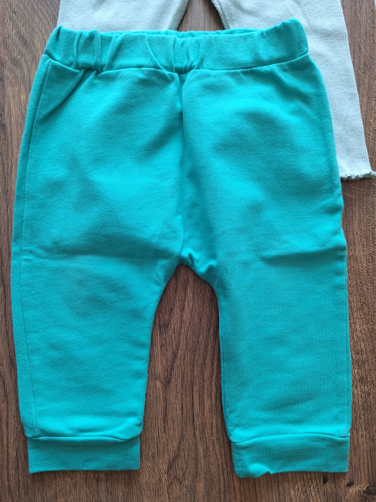 6ks oblecenia. Pulovrik vel.74 1x obleceny, Leginy lapkova patrola vel.74, pevny dobry material, troska teplejsi, vianocne leginy vel.80, syto zelene teplaciky vel.74 1x oblecene nove, 2ks tensich legin vel.74 malo nosene.