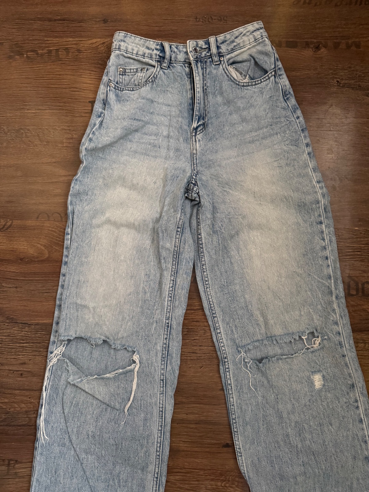 Ponúkam pekné svetlomodré roztrhané rifle na kolenách značky Sinsay. Veľkostne sedia tak na XS/S, ale prikladám aj rozmery. Dcéra ich nala rada ale už posúva. Boli nosené, no naďalej sú v peknom stave až na jemné roztrhnutie zdola, lebo boli dlhšie. Poštovné podľa taríf.