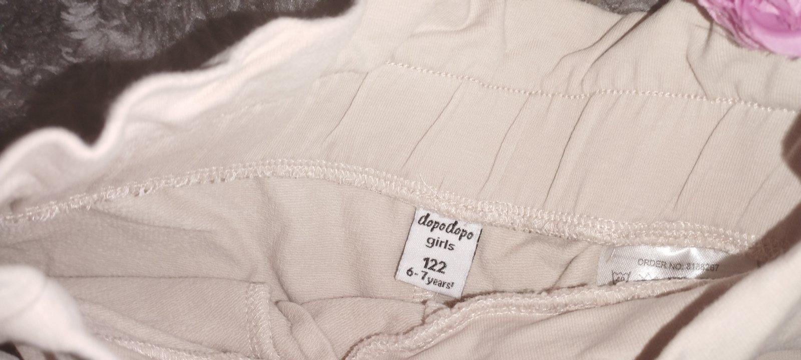 Dve veľkosti 122 a 128, v pase guma, elasticke, sýte farby.