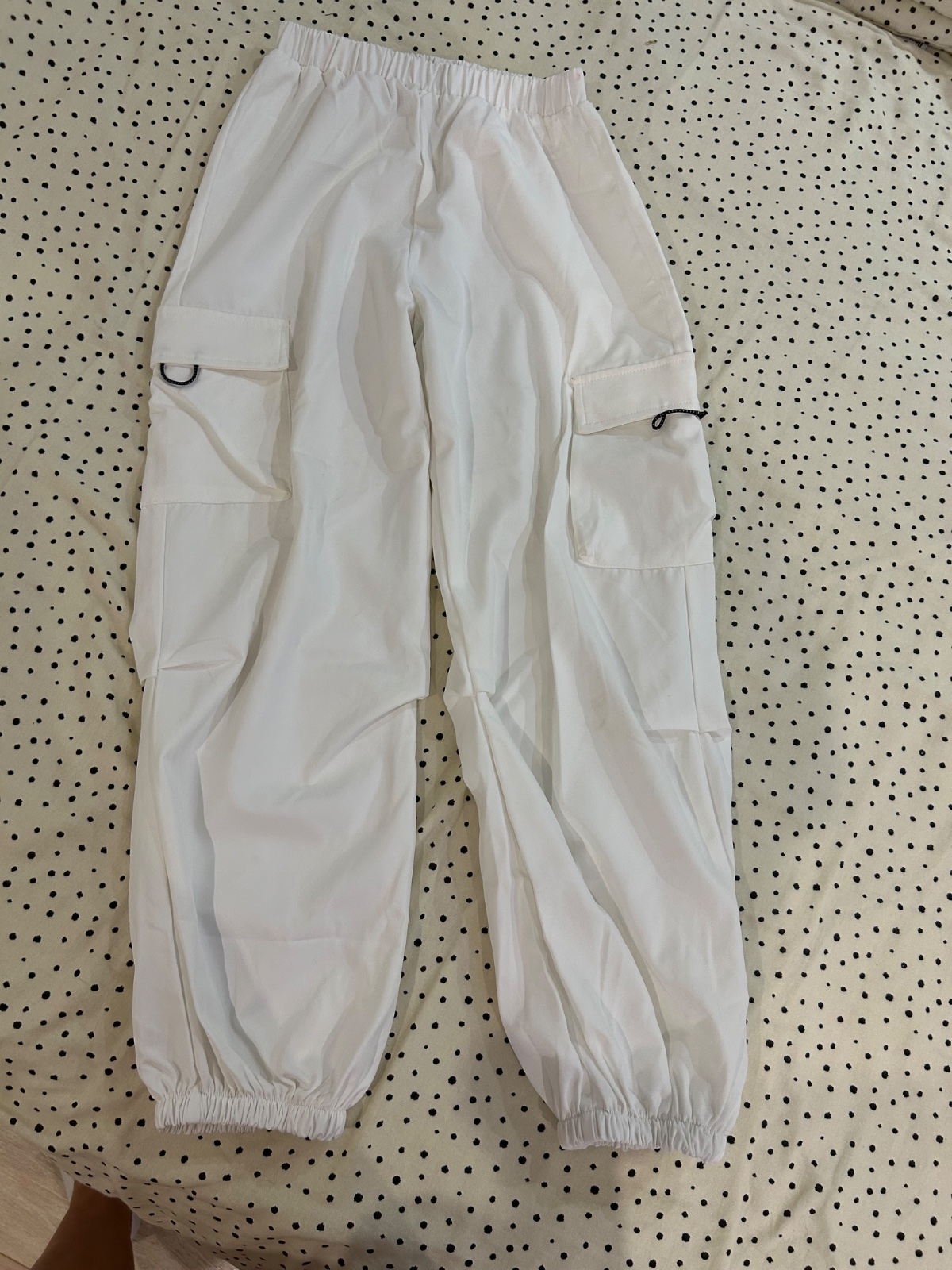 Nohavice sú vo výbornom stave, bavlna. Úpletový pás, šnúrka nie je funkčná. Sú pekné biele. Pás v kľude32 cm, max. 41cm, Dĺžka 67 cm vnútorná 49cm, boky 48 cm.