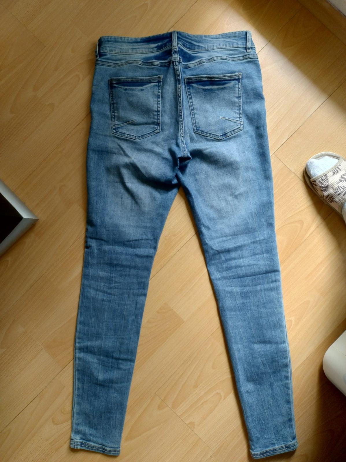 Predam svetlomodre rifle, par krat oblecene, nie som moc riflovy tip, takze som moc nevynosila a uz su mi viacere male, su v skvelom stave, velkost L, kupovane v Takku