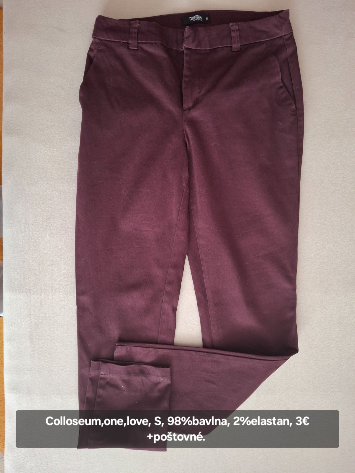 Predám málo nosené dámske nohavice Colloseum one love,veľkosť S. 98%bavlna, 2%elastan.