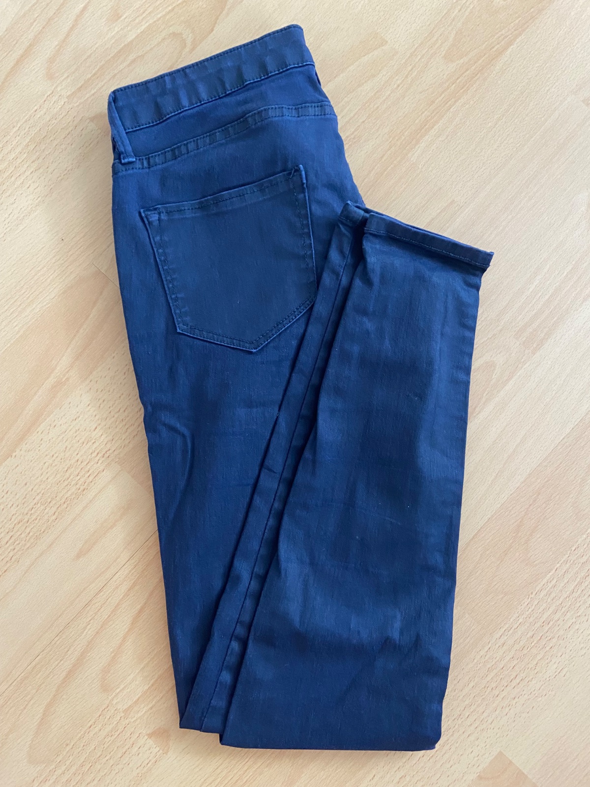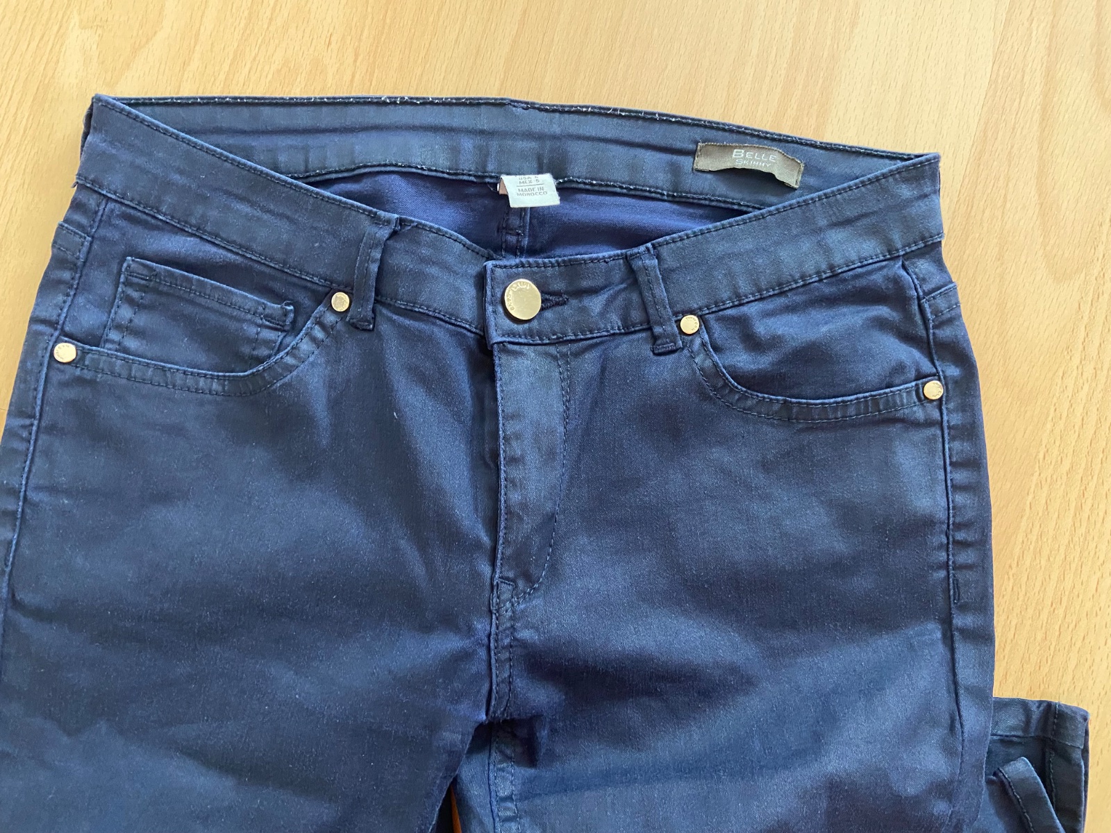 Rifle v super stave. Velkosť 38 - 165/70A, 98% bavlna, 2% elastan, tmavomodra. Pás: 40 x 2cm, dlzka: 94cm, od rozkroku: 74cm, sed: 33cm. Cena 7€ BELLE SKINNY