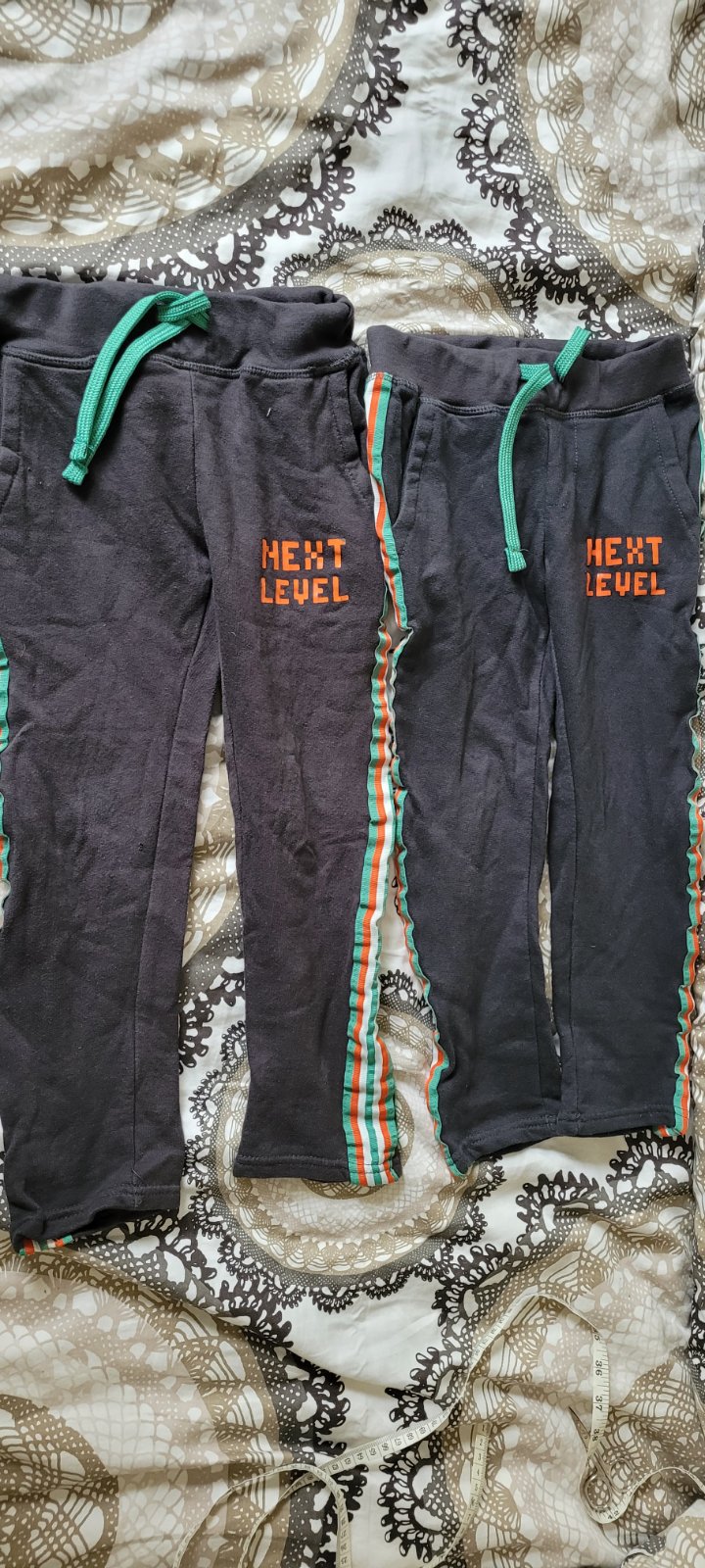 Obe velkost 122. Jedny maju malu dierku v oblasti kolena.