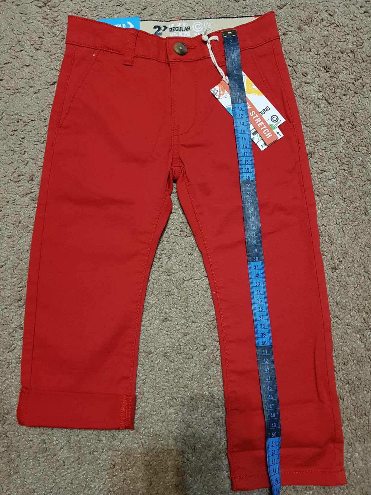 6. Strečové nohavice zn. Denim veľ:98, cena 11eur, šírka v páse sa dá regulovať, predné a zadné vrecká. Červená farba v skutočnosti trošku tmavšia. !!!PREDANÉ!!!