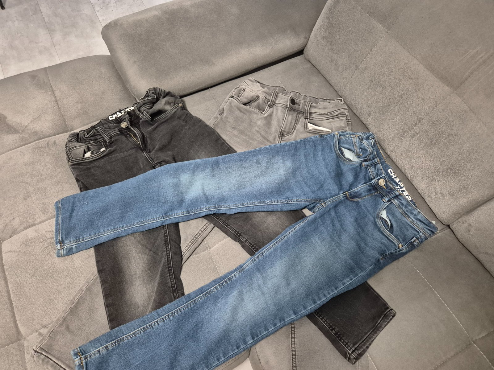 Nosene,bez poskodenia. Tmavo sive zateplene,modre nie. Bez poskodenia.