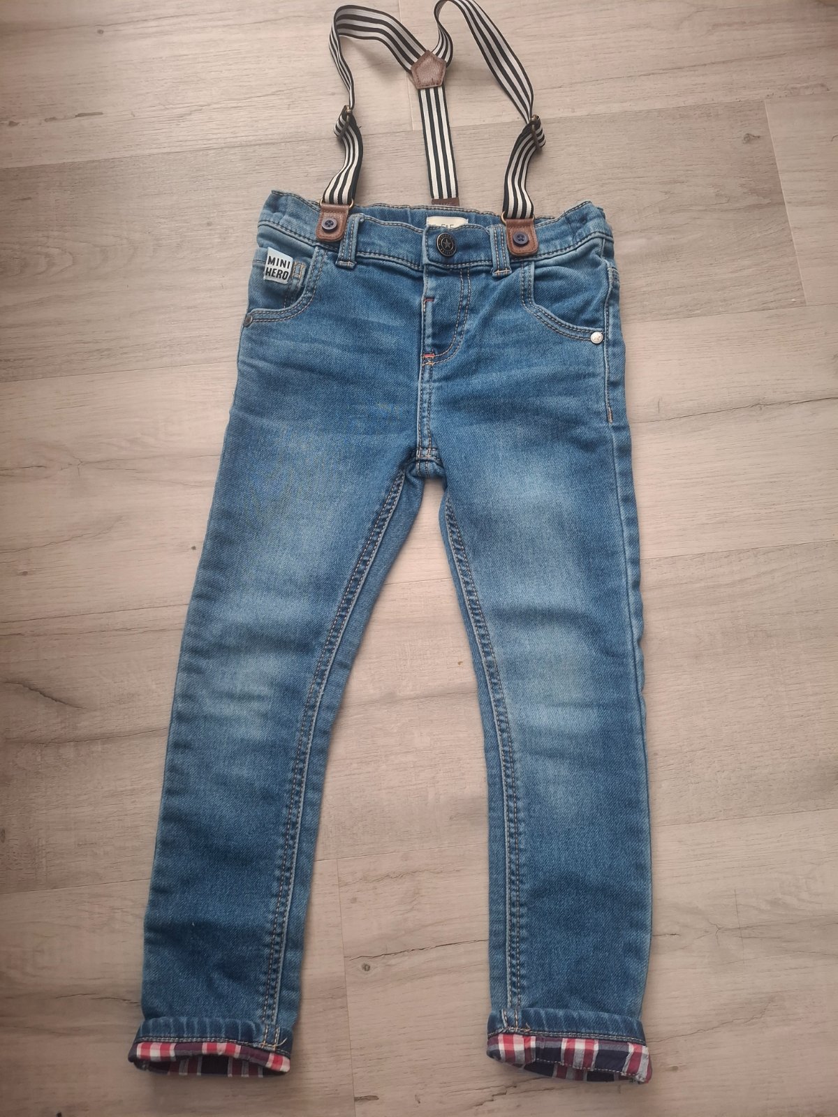 Predám moderné, raz oblečené rifle pre chlapca. Veľ. 110. Pás je nastaviteľný. V kľude má pás 2x 26 cm, natiahnutý max. 2 x 32 cm. Ostatné rozmery na fotkách. PS: Pozrite si aj ďalšie vecičky z m...
