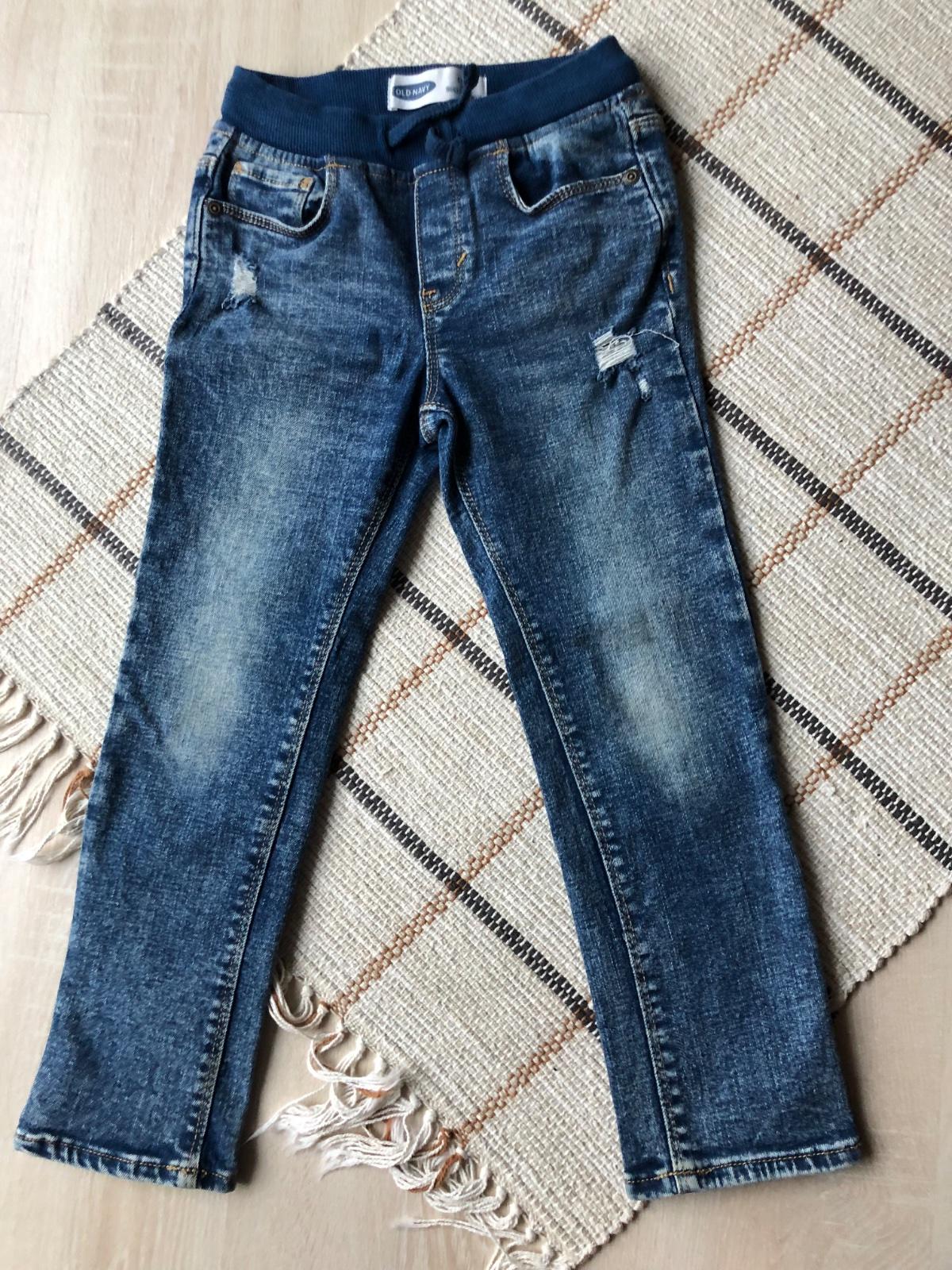 pekny noseny stav, bez poskodenia, pas nastavitelny snurkou vpredu, velkost uvedena na stitku - 5r, pevnejsia riflovina