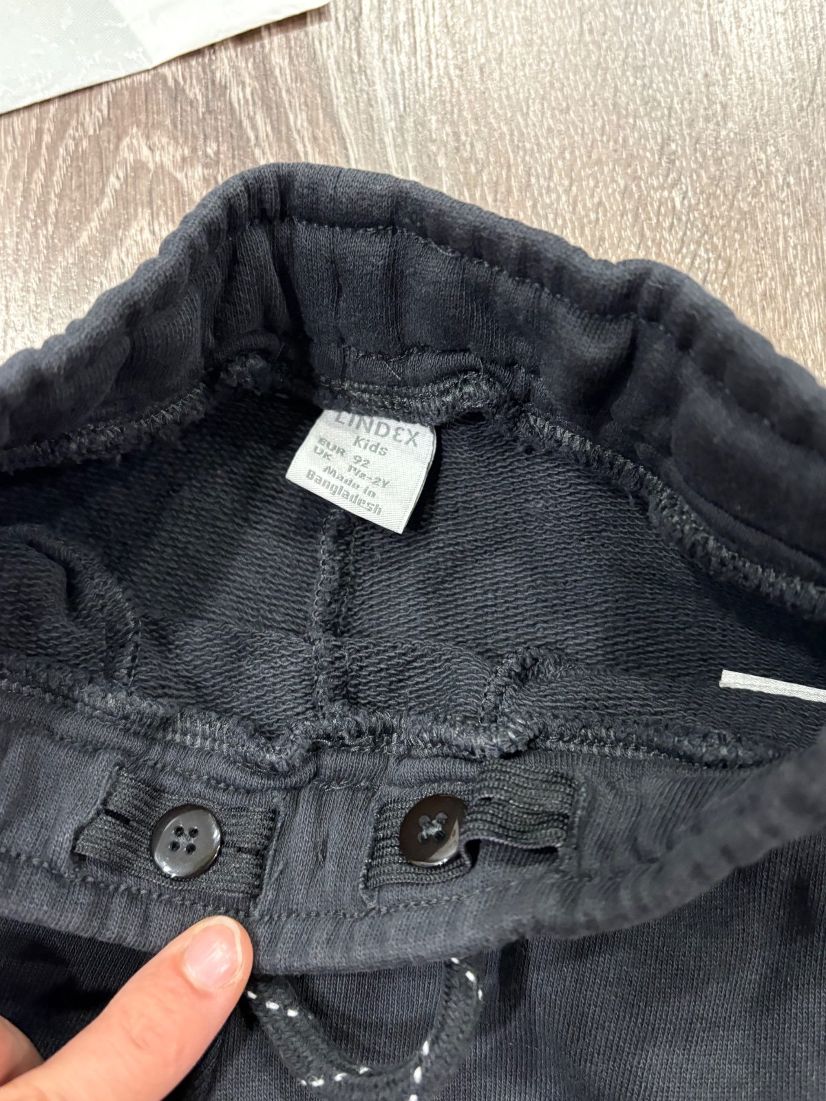 04.LINDEX tepláky vo velkosti 92, v páse na gumku no daju sa stiahnut aj šnurkou, nosenie vidieť mierne na kolenach, no žiadne diery ani nič podobne....velkost je 48cm a širka v páse je od 24x2cm od 32x2cm
