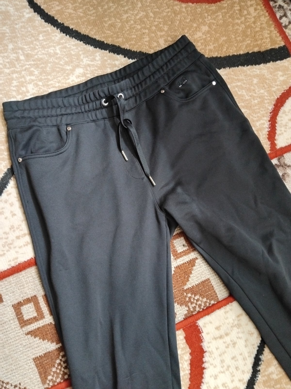 CRIVIT Damske tenke teplaky čiernej farby,z mierne elastickeho upletu,v pase gumka.super stav. se35 ROZMĚRY:vel.40/42,cez pas 2x40cm/v klude/,cez boky 2x60cm,sedy 31/40cm,dl 100/74cm. ZNAČKA:criv...