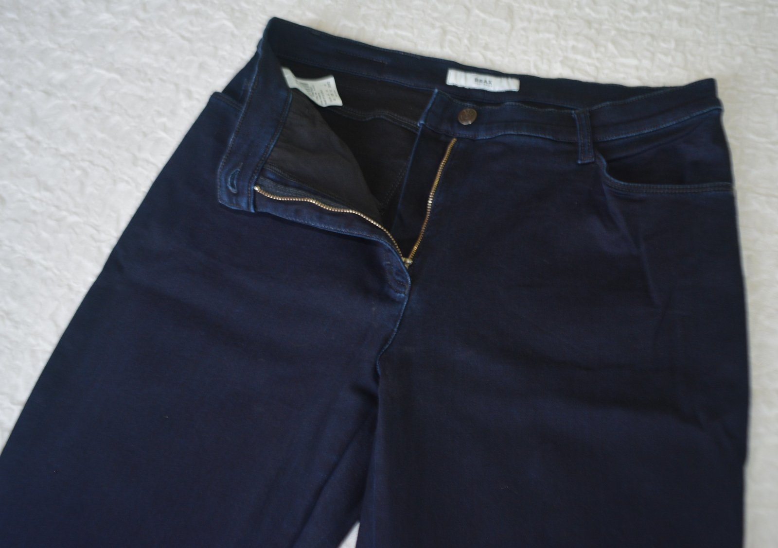 Dámske rifle Brax, kolekcia Carola, veľkosť XL, rozmery: bočná dlžka 102cm, od rozkroku 72cm, pás 2x42-46cm - rifle sú elastické prispôsobia sa postave, strih rovný. Kvalitná riflovina z vnútornej strany mierne vyteplená - ideálne na zimu.