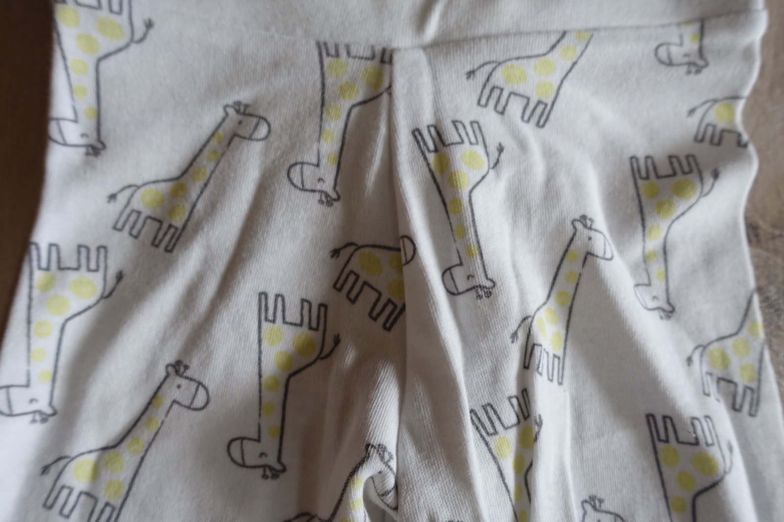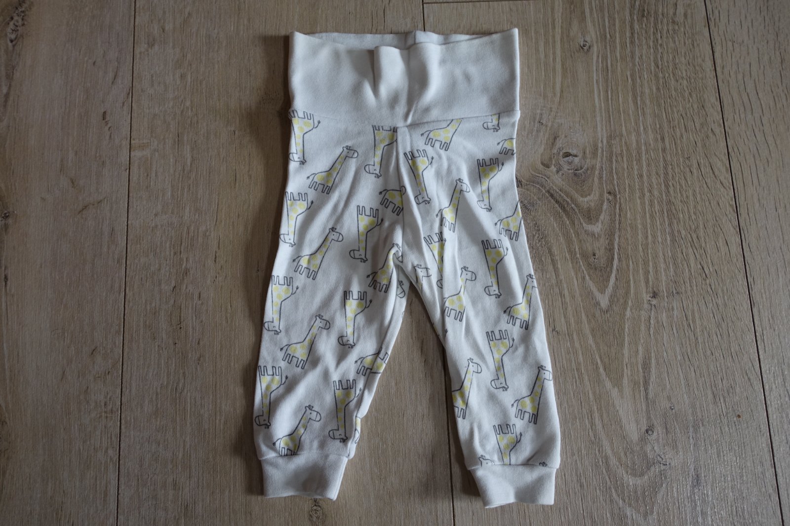 Predám krásne, mäkké a pohodlné bavlnené tepláčiky so žirafkami. Sú vhodné pre nenáročnú mamičku, nakoľko boli nosené a trošička pri naklonení akoby sa chcel začať robiť chĺpoček z prania. Ale ešte nie sú žmolkavé. Celková dĺžka tepláčikov je 39 cm. Šírka pásu v kľude je 19,5 cm. (B)