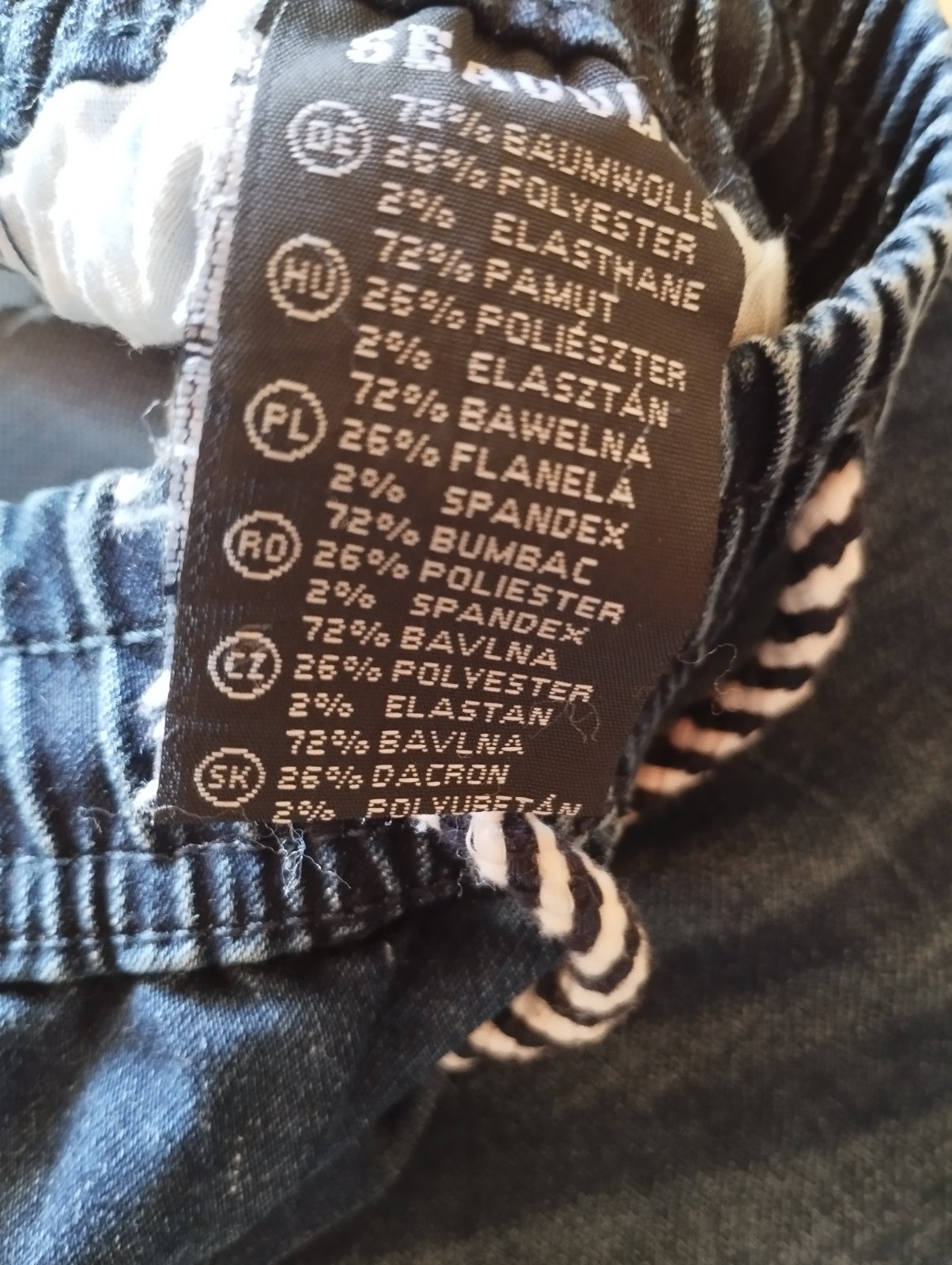 Modre rifle, obsahuju 2%elastan. Dlzka 79cm. Bez poskodeni, boli 1x prane, syn ich nechcel, kvoli modrej farbe.