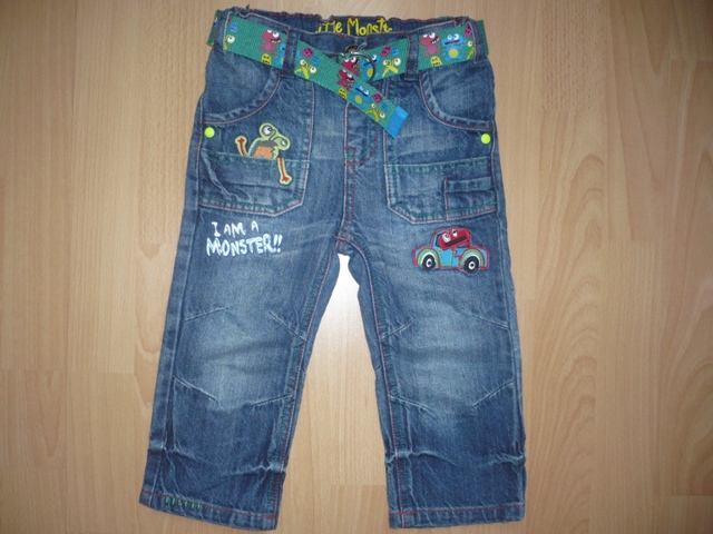 Riflíky z monster kolekcie, s našitými aplikáciami a veselým opaskom. Sú v 100% málo nosenom stave. V páse nastaviteľná gumička. Nositeľné aj dlhšie. 100%bavlna