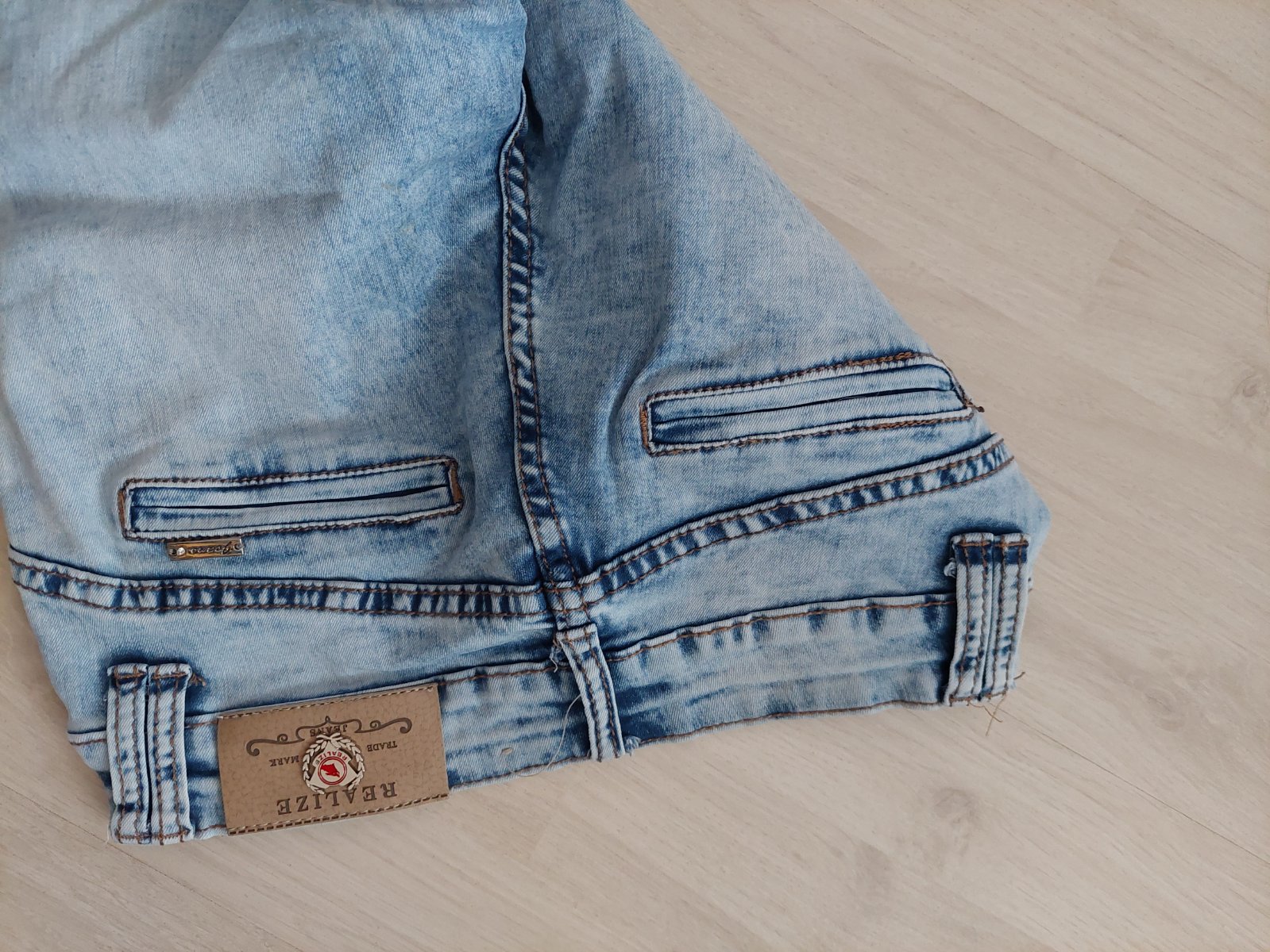 Nadherne rifle s kamienkami, ziadne nechybaju, nevypadavaju, nosene, ale vyborny stav. Maju uzky strih, mierne pruzne, ale na stihlu postavu. Sedy 18/29, sirka v pase 36, dlzka 86.