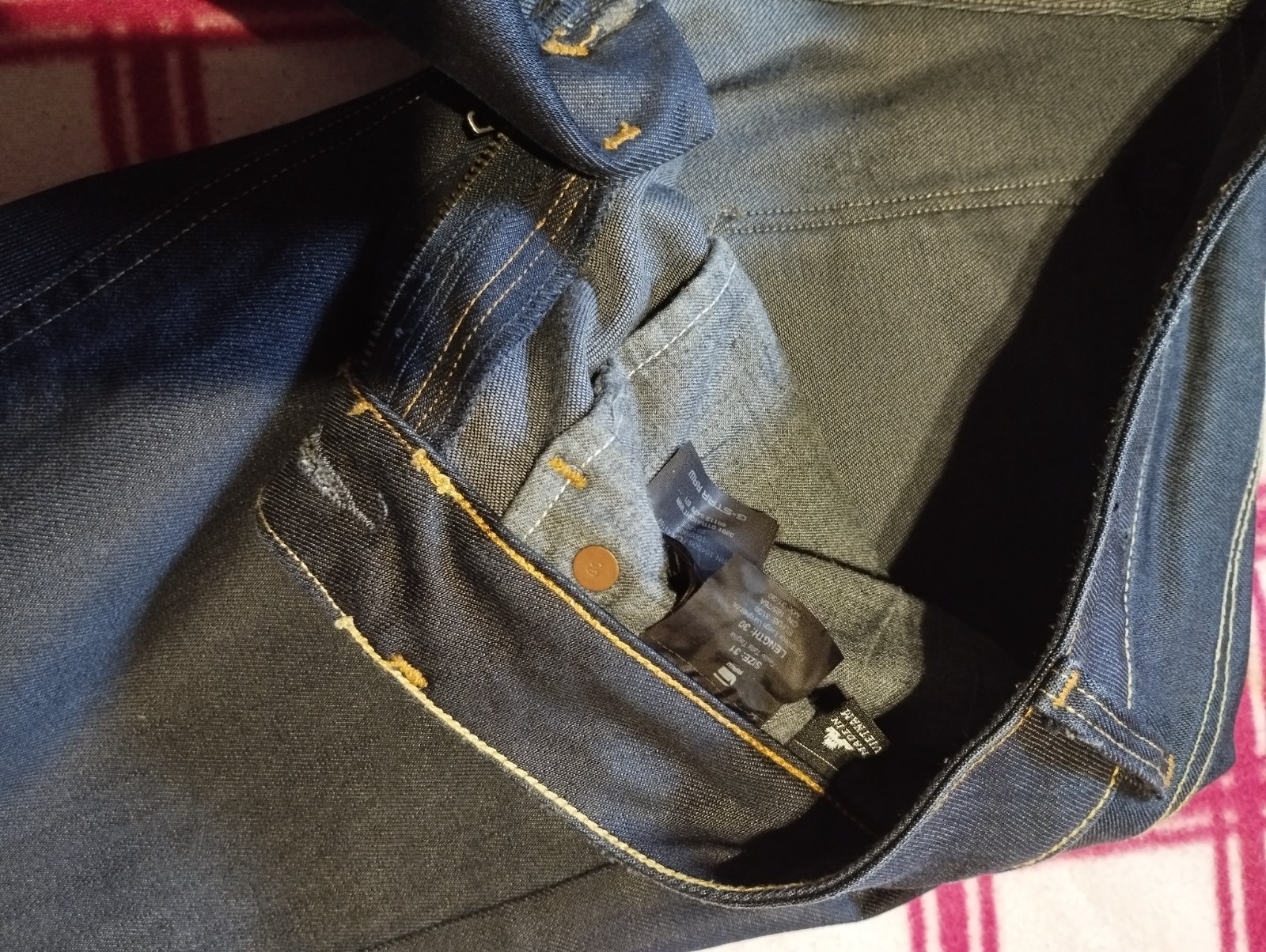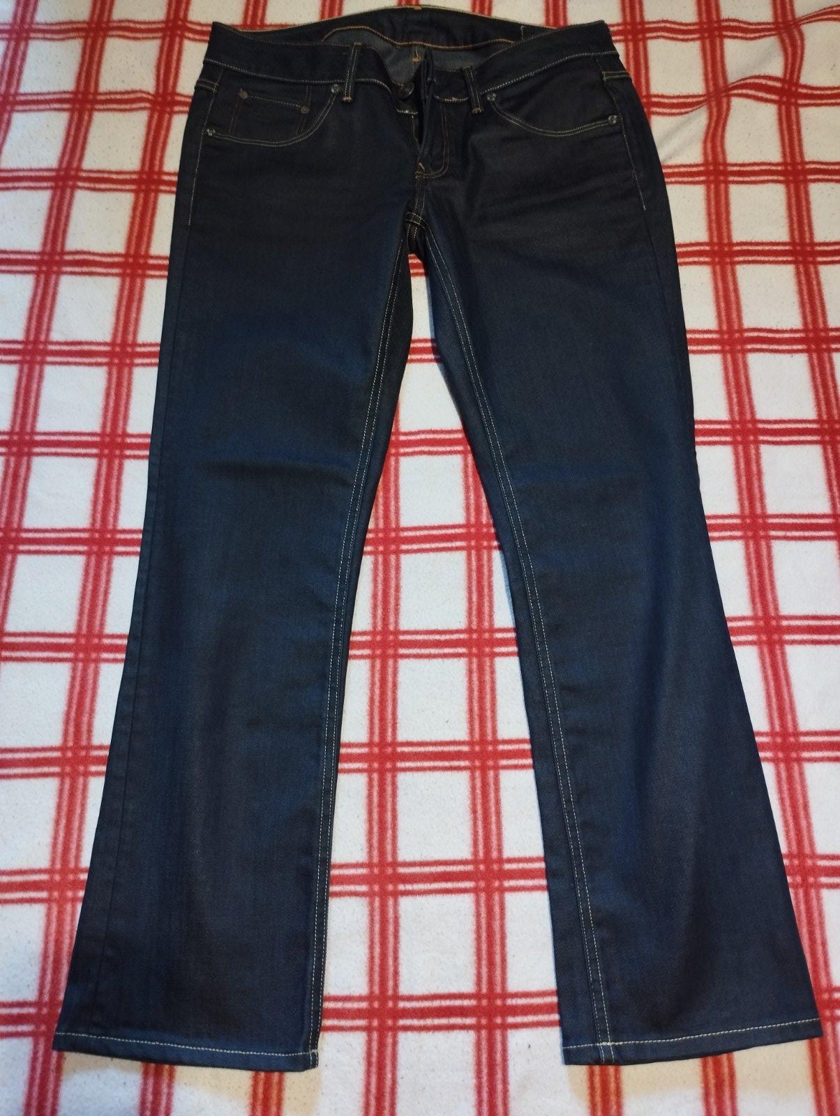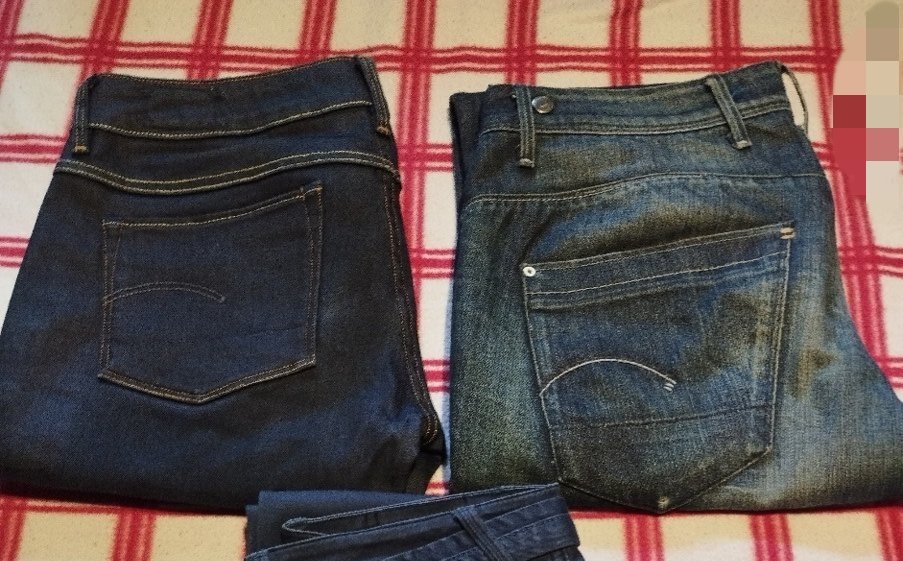 Tmavomodre s klasickymi vackami, malo nosene, velkost 31