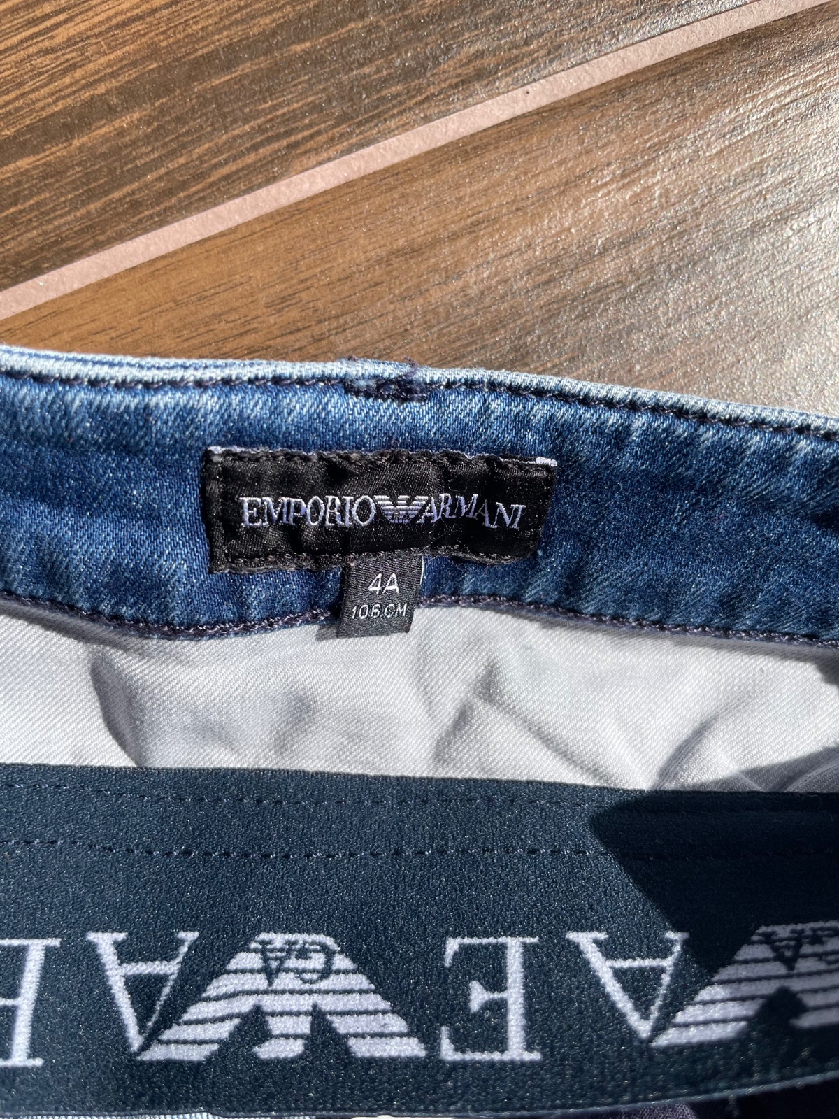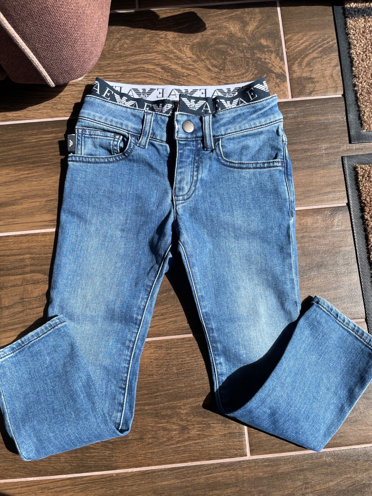 Predám z jemnej rifľoviny rifle zn. Emporio Armani, príjemný mäkký materiál, málo nosené, veľkosť 106 cm, na 4 roky, cena 25€ plus poštovné, možný osobný odber v Bratislave