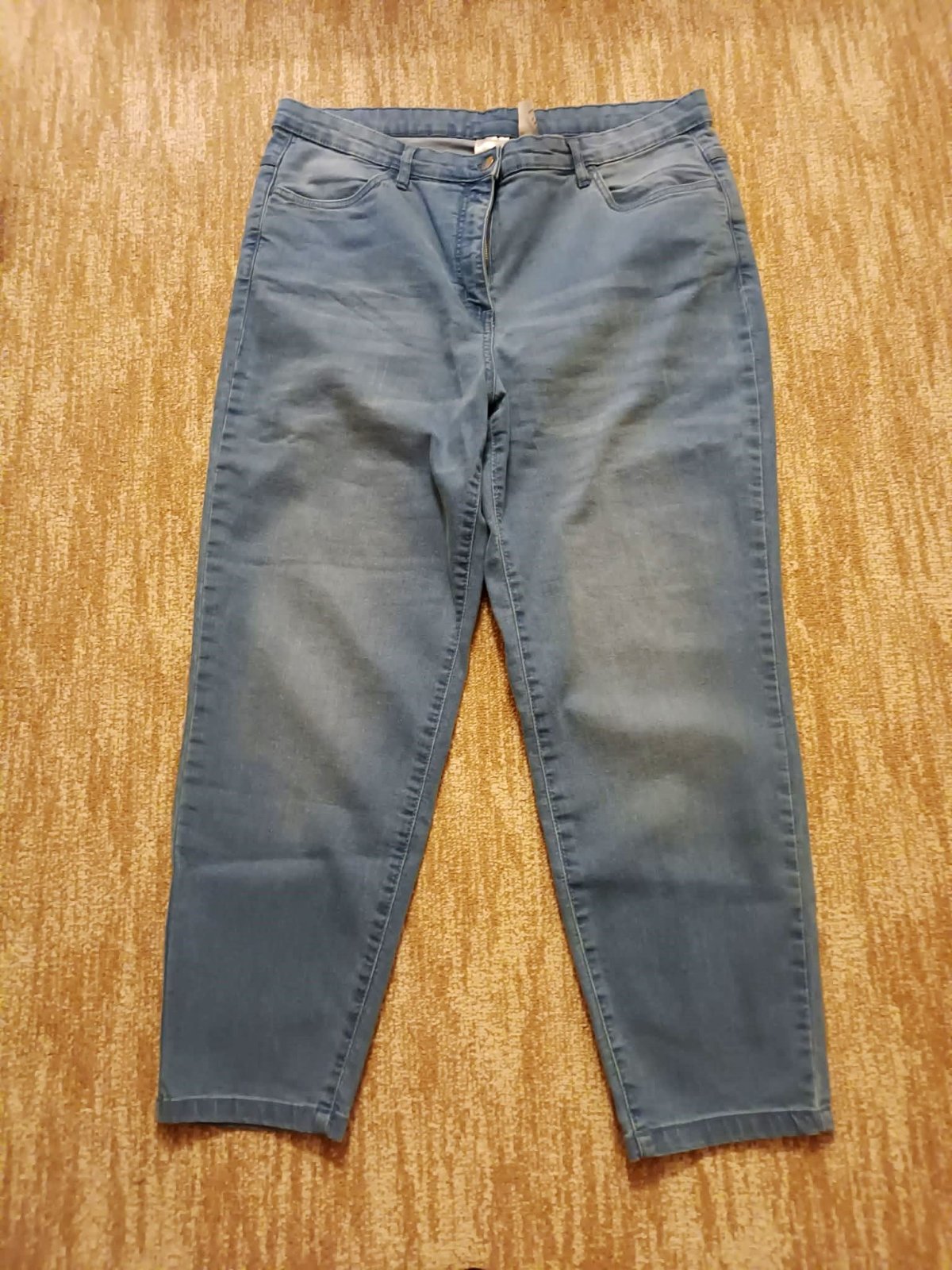Dámske rifle skrátenej dĺžky, svetlomodrá farba, veľ. 23, dĺžka od pása dole 100,5 cm.