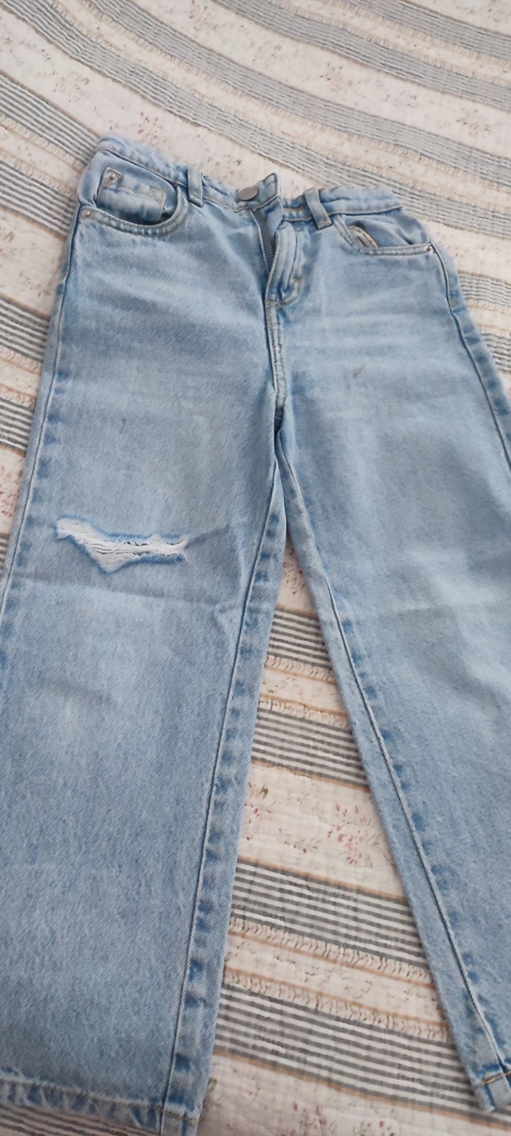 Predam rifle nosene len nasou dcerou, su v super stave bez akychkolvek poskodeni. Velkost pisu 128, no daju sa nosit aj skor. Je to sirsi strih vhodny pre vsetky typy postav. Dole su na lemoch roz...