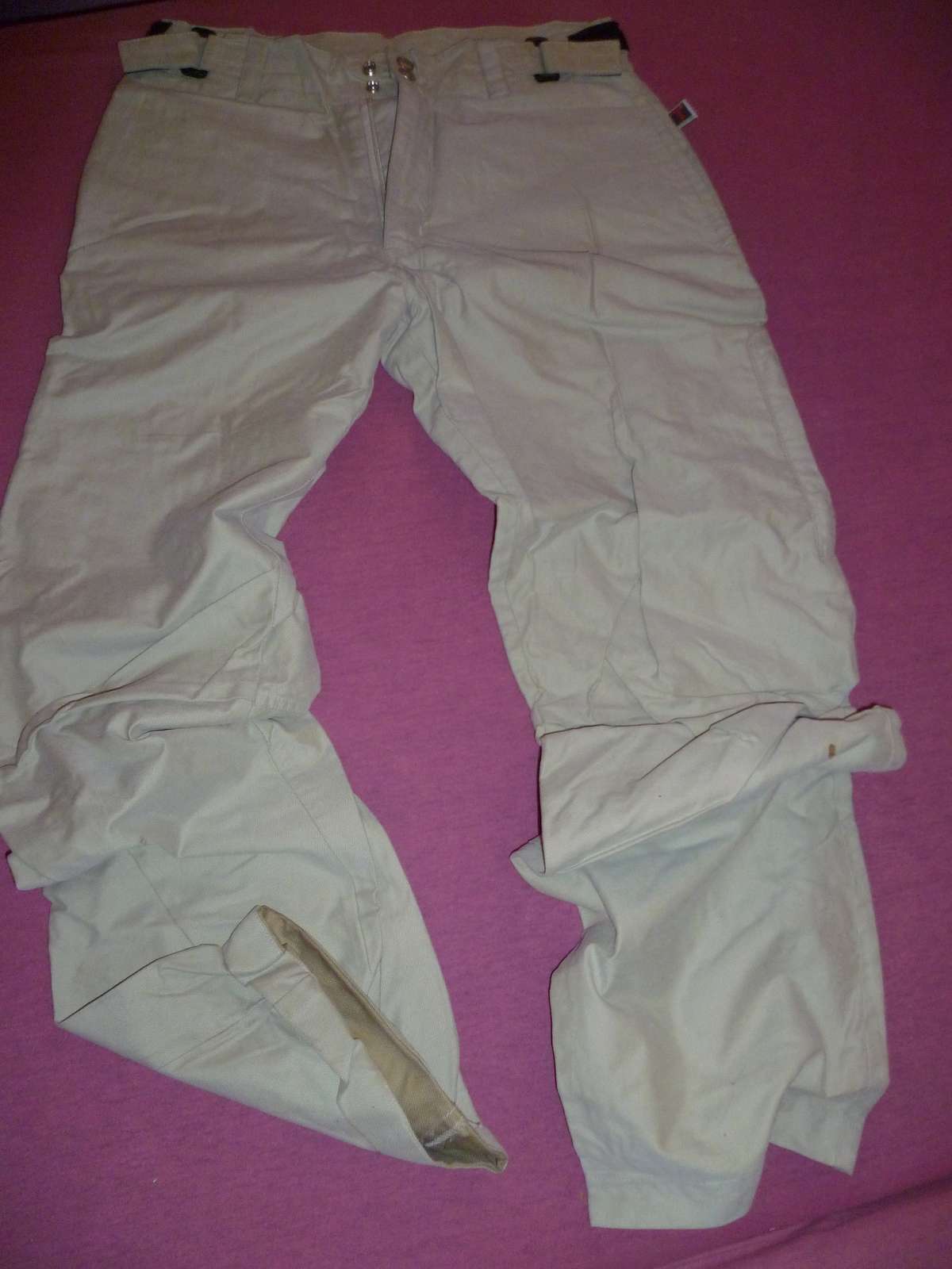Lifeline: Sú z mäkkej látky, sú velmi pohodlné, elastické. Dl. 101, pás v klude 2x38-41 cm-látka pustí, sed vpredu 16,5, vzadu 27,5, stehná v klude 2x29-31, śírka úplne dole 2x29 cm.