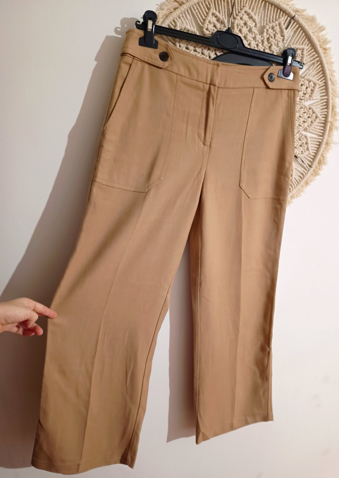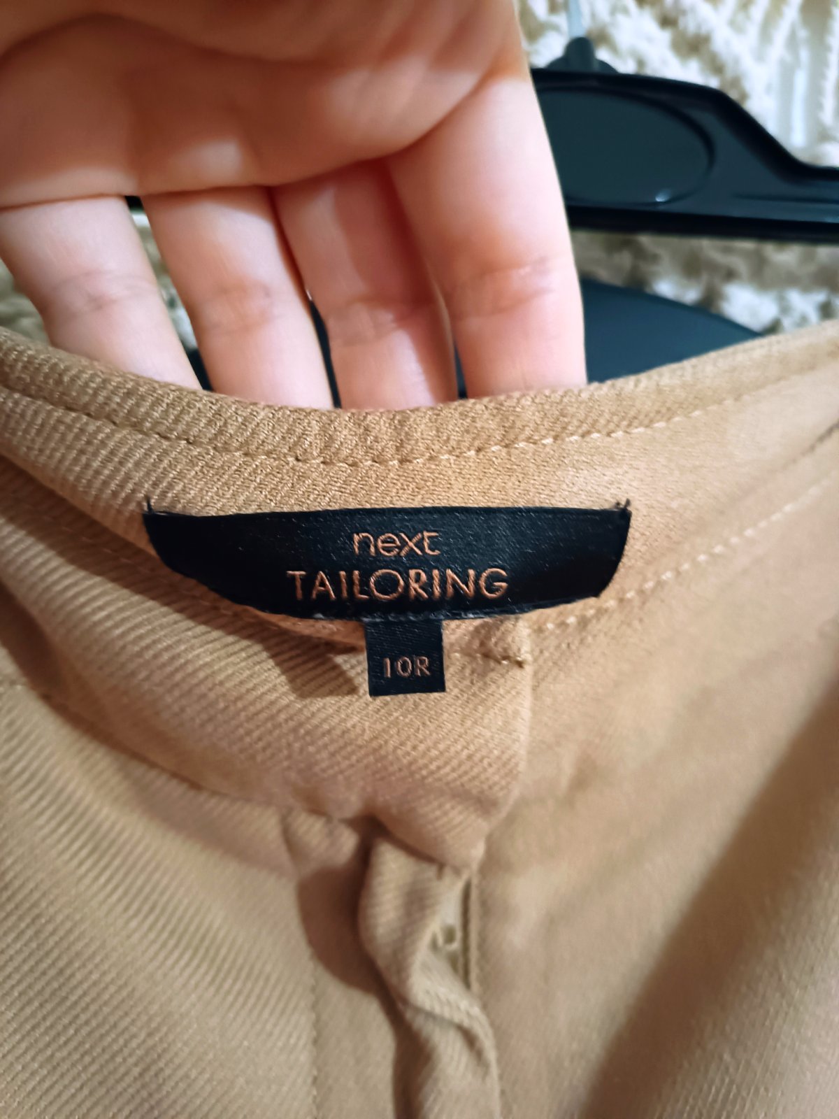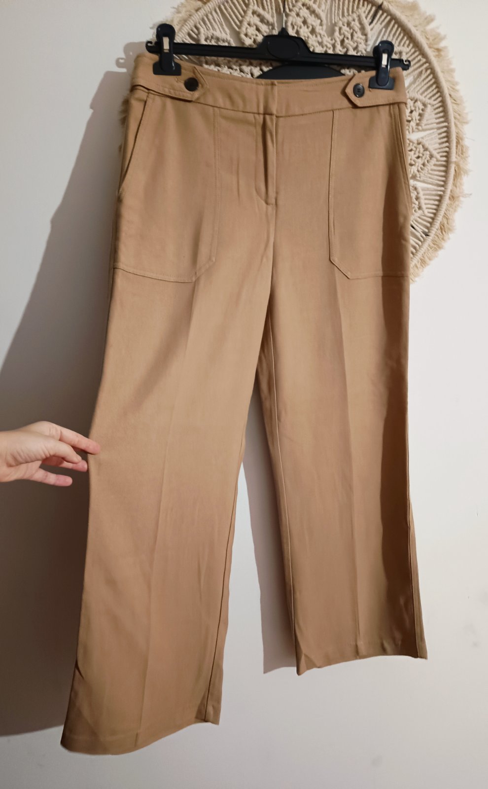 Kvalitné široké nohavice Next v. L/XL - premerajte, materiál 55% ľan, 45% viskóza, pekná biela farba, veľmi pekne prepracované, kopa detailov - štepovanie vo všetkých častiach - viď detail. foto,...