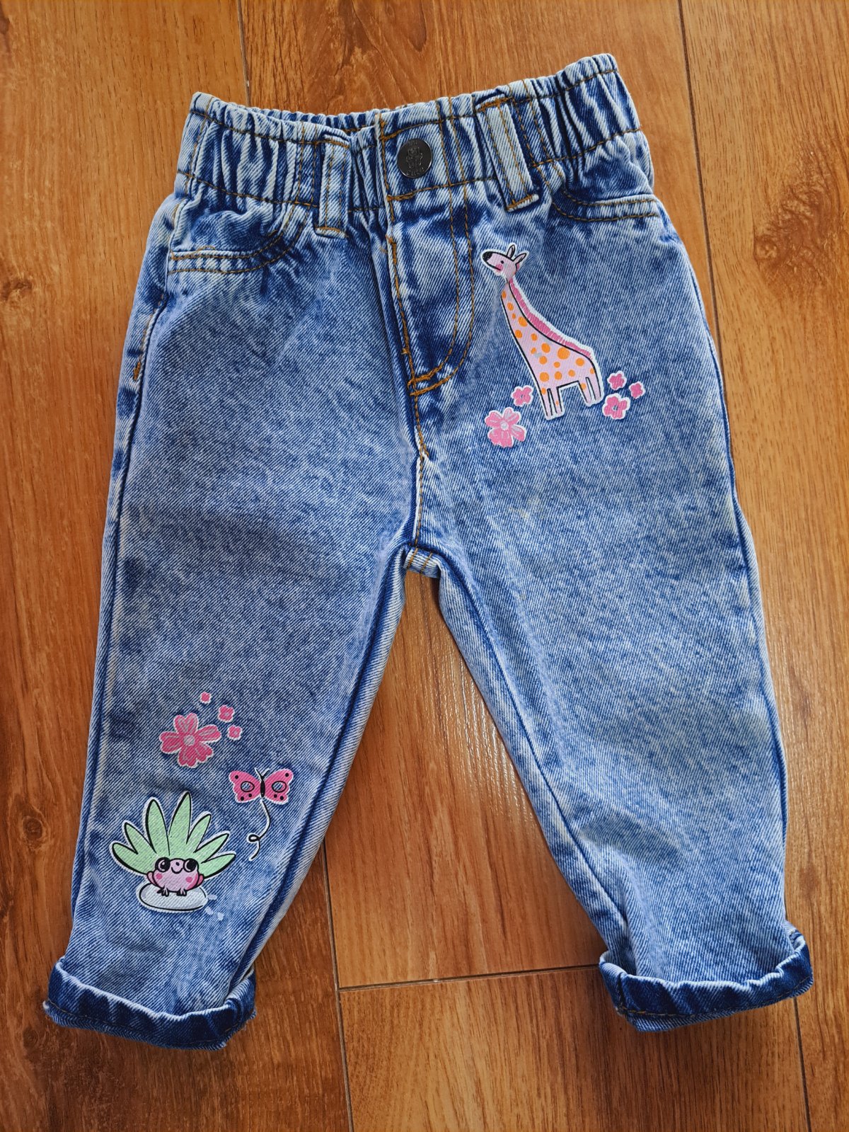 Predám pekne rifle s výšivkami vel.74 naspodu je gumička sadne aj na vel.80,top stav,párkrát oblečené,značka so cute Pepco,cena 2€