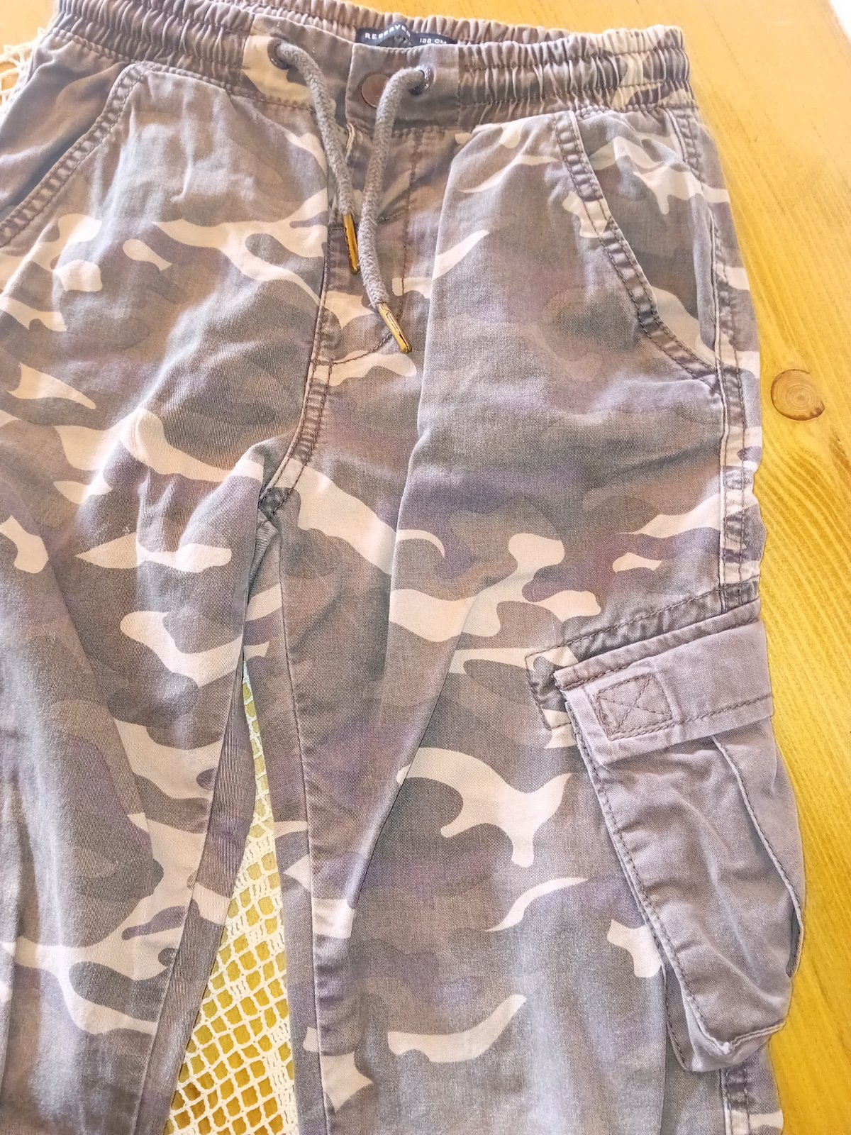 Nohavice v dobrom nosenom stave. Funkčná šnúrka v páse. Všetko nafotené. Troška vyblednuté kolená.
