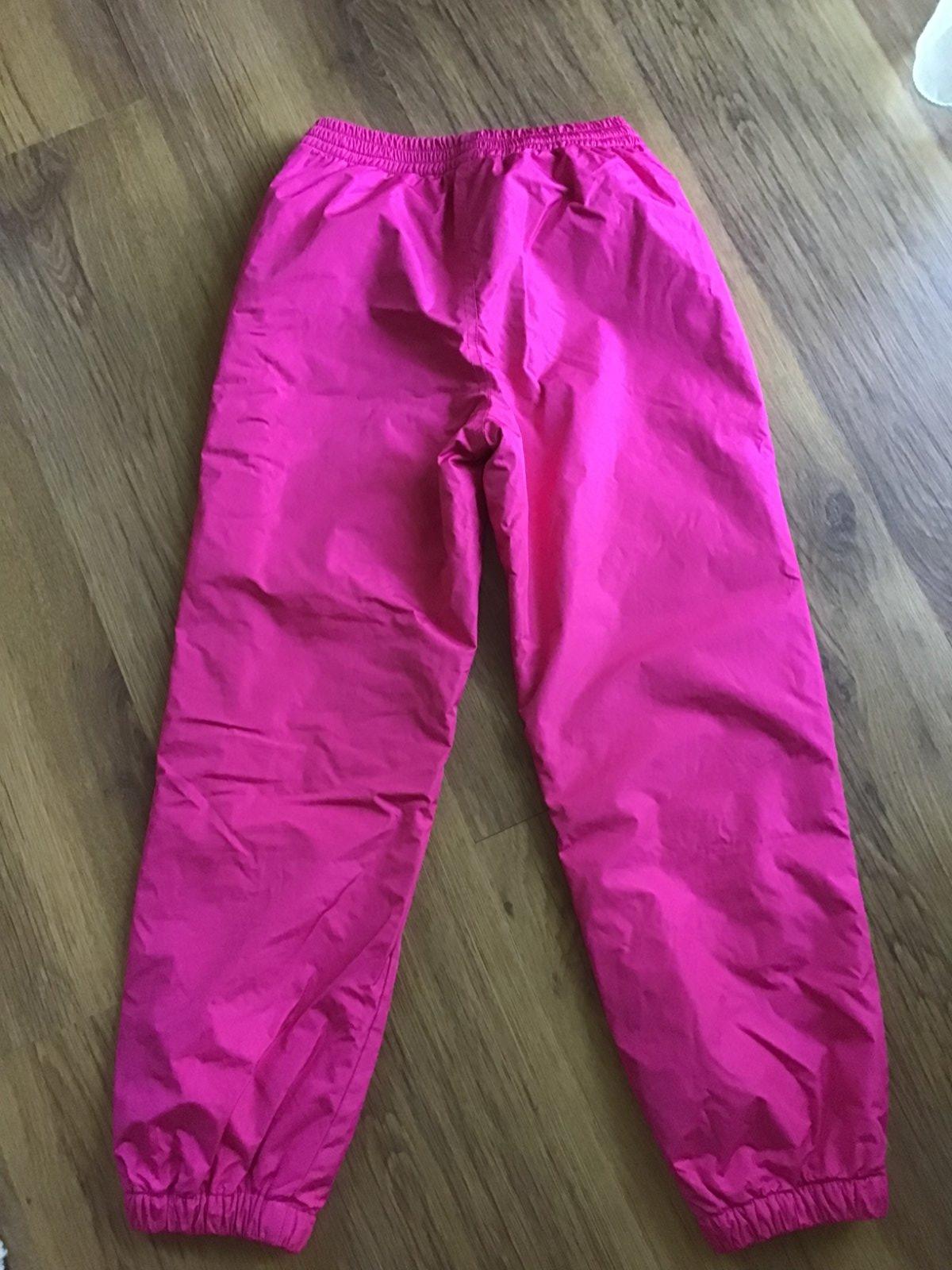 Nosene, sportove nohavice, zateplene flisom. Farba je pekna, syto-ruzova, nie cyklamenova, ako mi ju zachytilo na foto. Na pravom kolienku mala milimetrova dierka ( az teraz som si vsimla ), inac su v top stave.