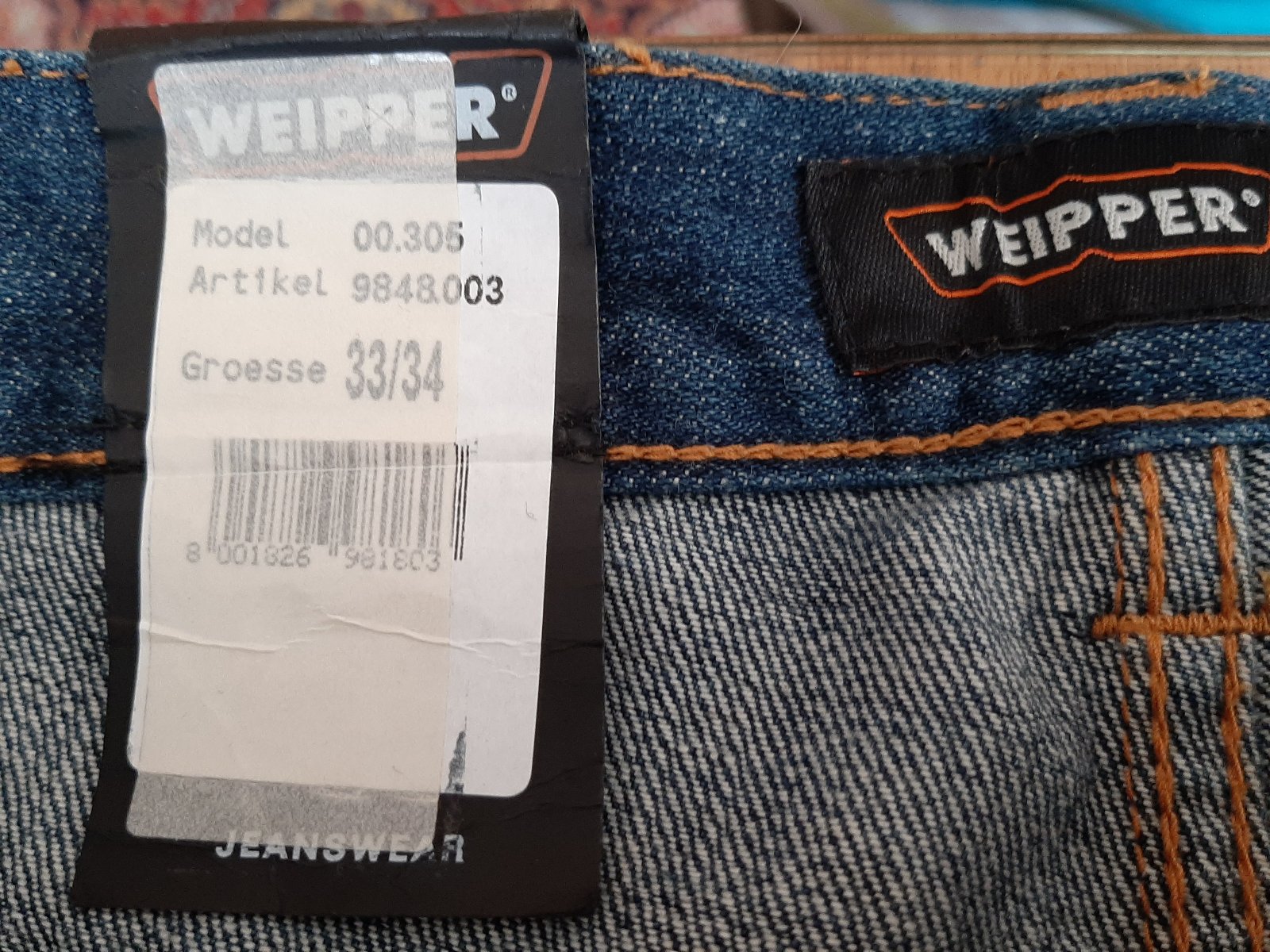 Pánske rifle značka Weipper veľkosť 33/34. Nenosené, ešte s etiketou.