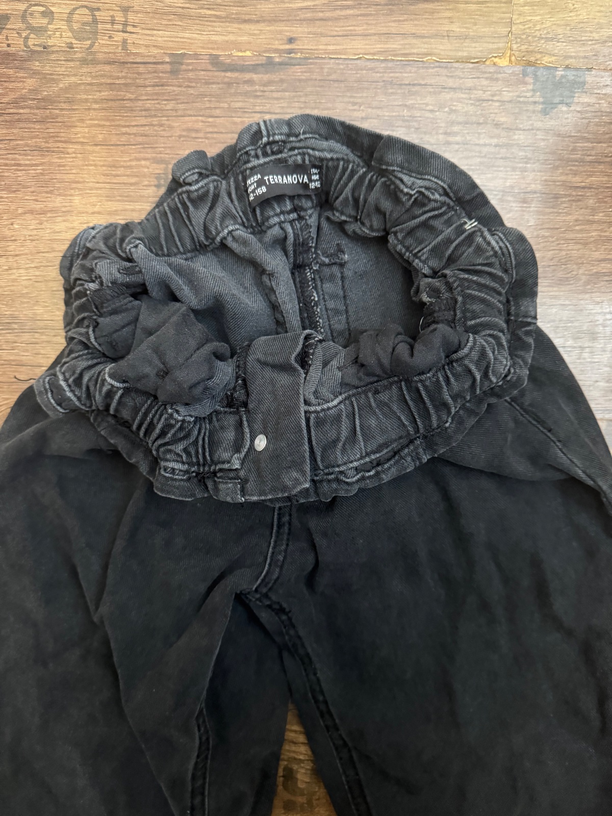 Ponúkam krásne tmavosivé až čierne rifle značky Terranova. Sú vo veľkosti 152-158 co je na 12-13 rokov ale prikladám aj rozmery. Boli sem-tam nosené, naďalej v peknom stave. Sú aj pre dievčatá čo majú štíhlejší pás, ale dajú sa roztiahnuť. Poštovné podľa taríf.