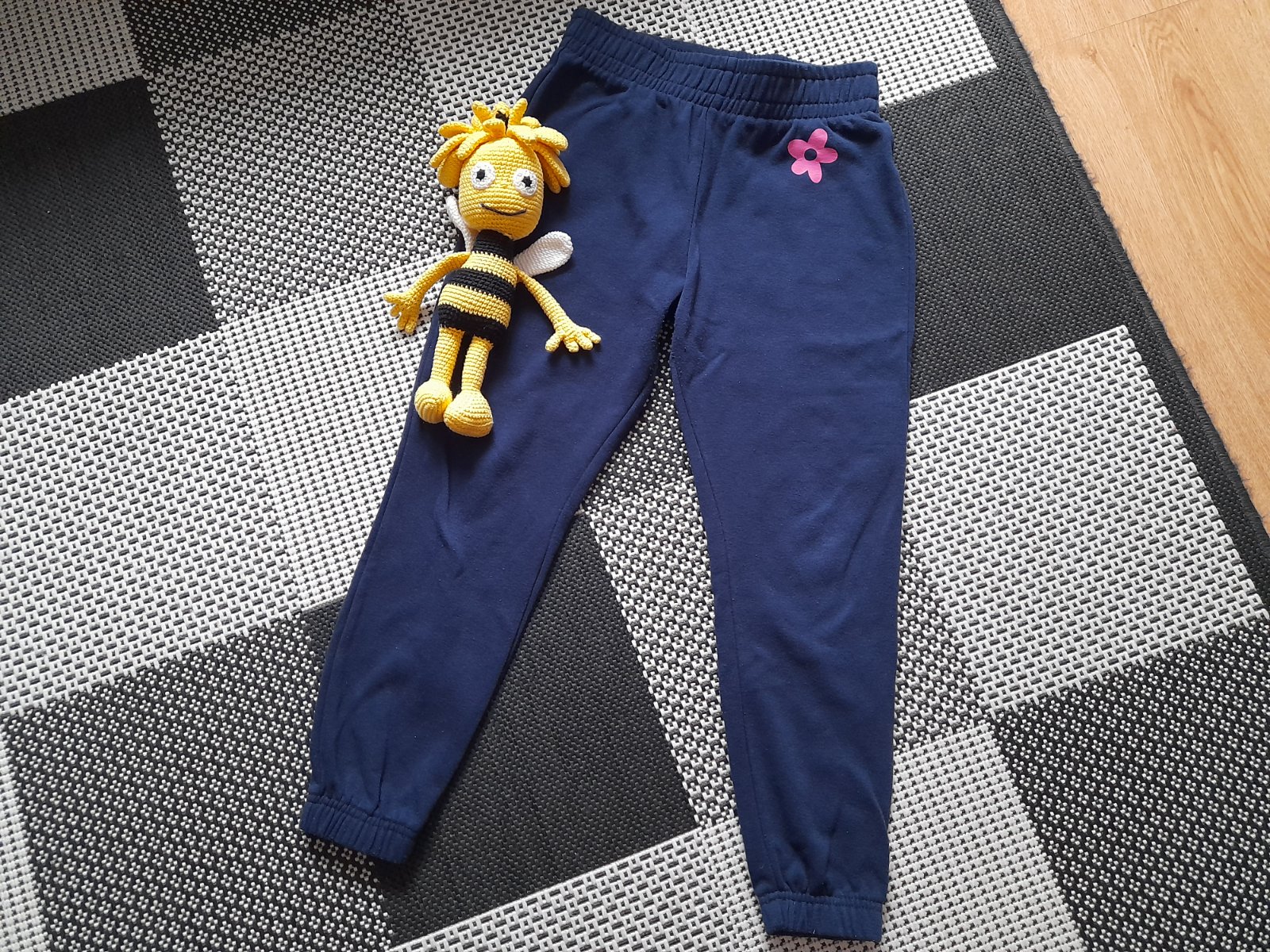Naše obľúbené tepláky, veľmi vďačne, super teraz na jeseň. Veľkosť 134. Je na nich mala dierka nad kolenom. My sme to nosili tak
