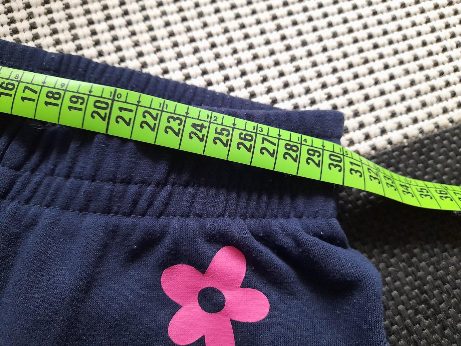 Zachovalé dievčenské tepláky, ideálne na doma, majú žmolky. Veľkosť 8-9 rokov (128/134). Celková dĺžka 72 cm, dĺžka od rozkroku 53 cm, šírka v páse 30 cm.