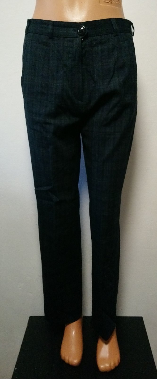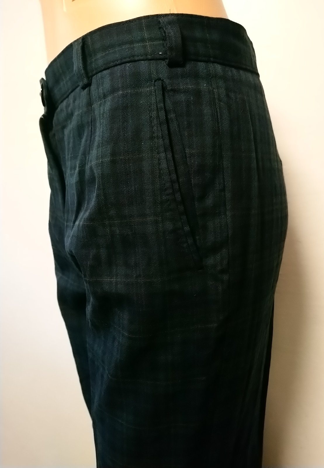 dámske kárované tmavo zeleno modro čierne nohavice, vrecká,