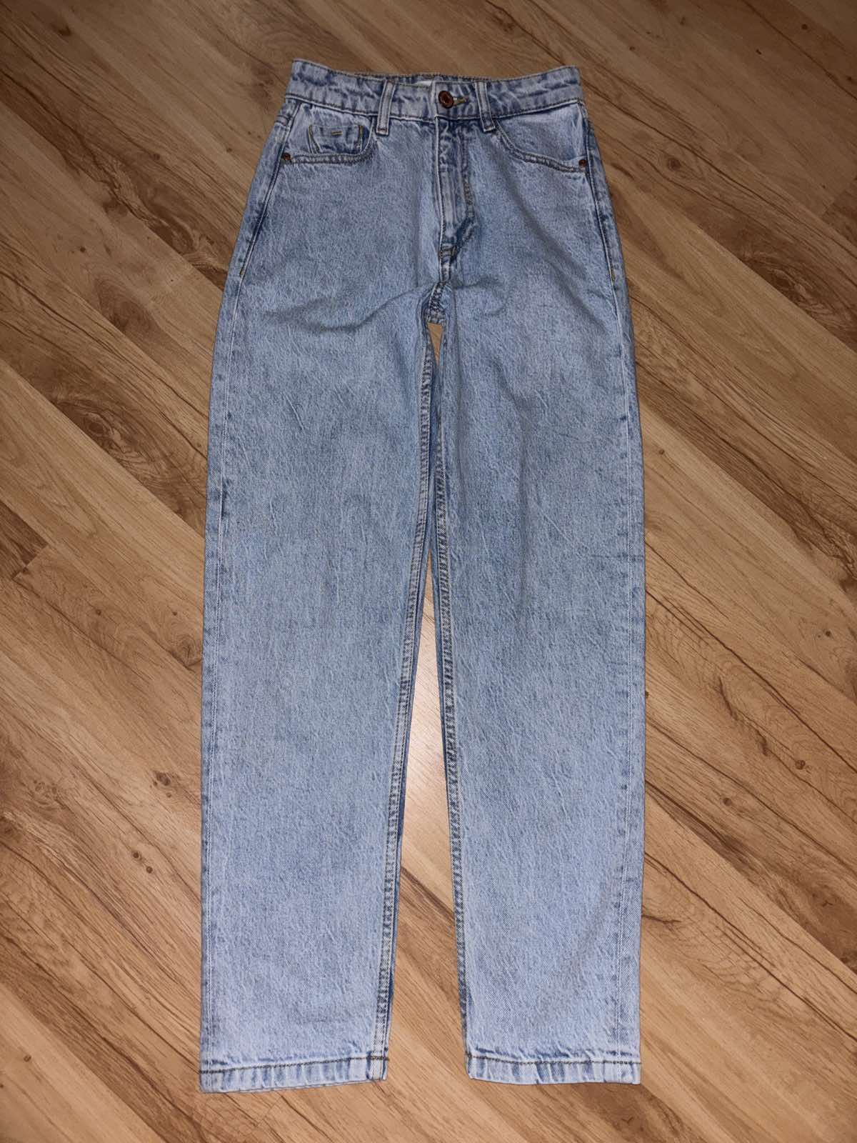 Výborný stav, nepruzia,vysoký pás, veľkosť 32, pás 30 x 2 cm, dĺžka 97 cm, vnútorná dĺžka 70 cm, sedy 30/36 cm