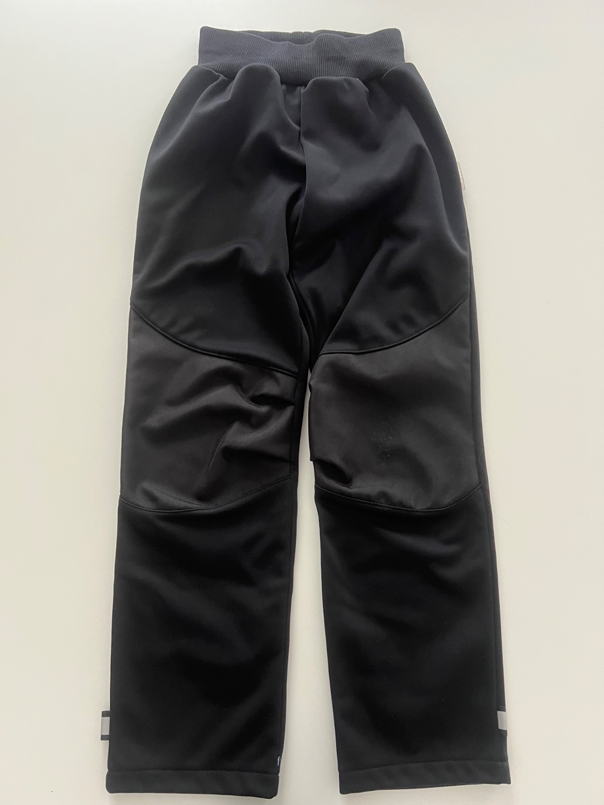 Zateplene softshellove nohavice. Velkost 146/152. zateplene flisom. kolena spevnene kocikovou (pevnou) latkou. odrazky. v pase na gumu (zvyseny pas).