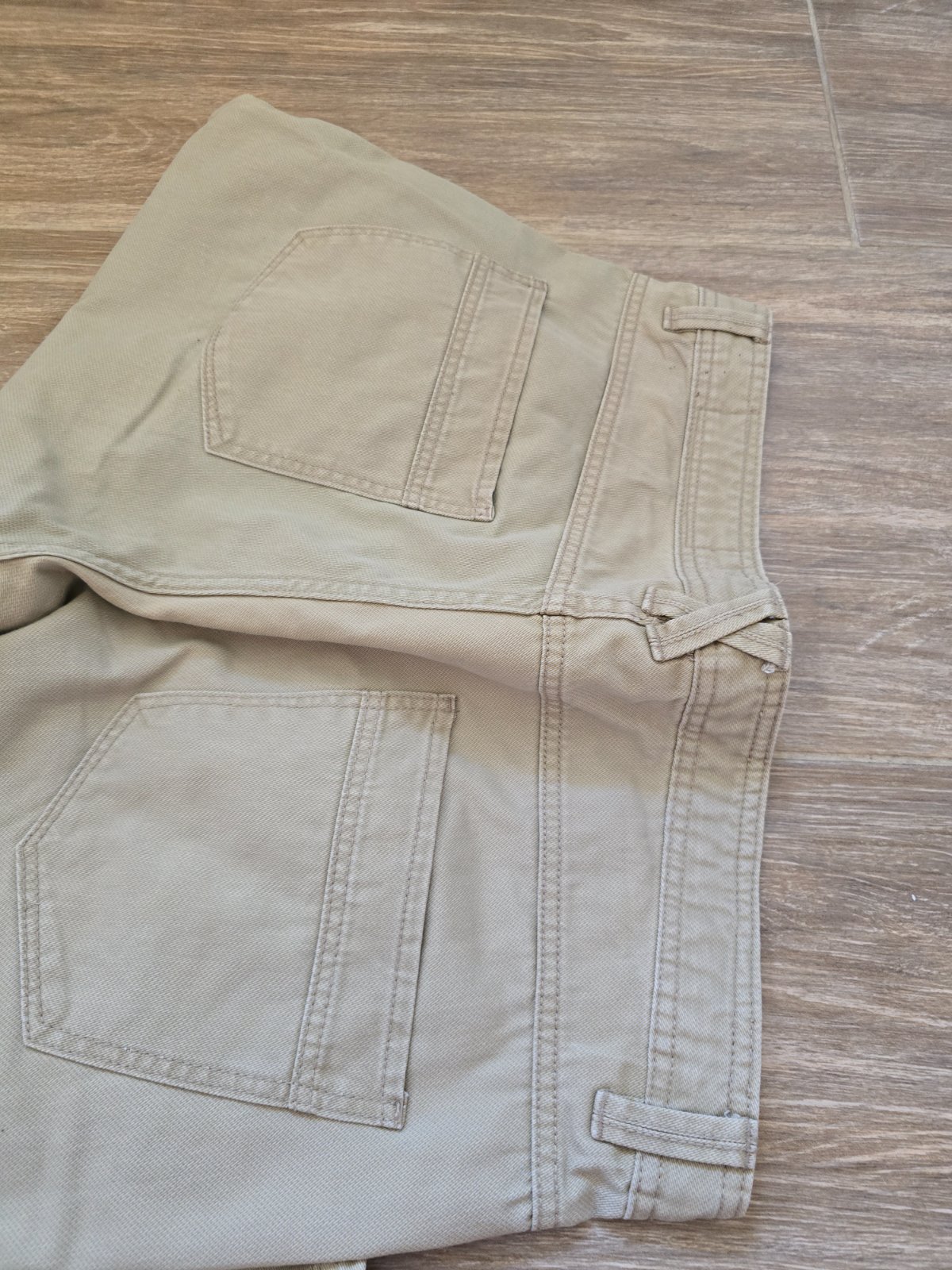 Dobrý stav, materiál je bavlna, sú elastické, farba nohavíc na úvodnej fotke sa najviac približuje skutočnosti. Okolo vreciek a na istých častiach nohavíc, akoby vyšúchaný efekt. Miery: vnútorná dĺ...