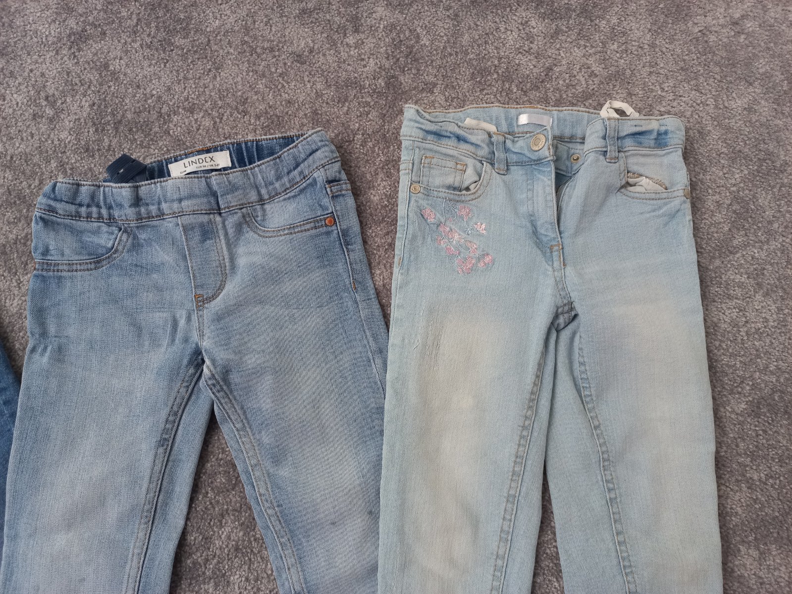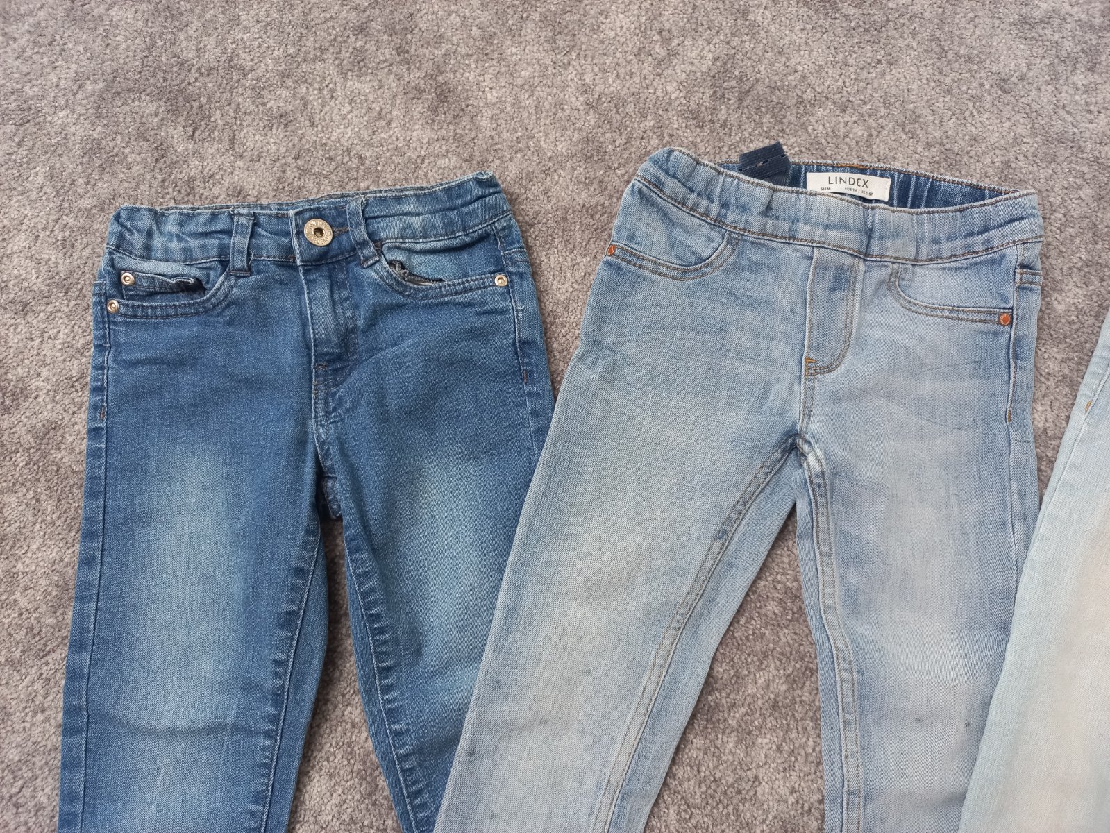 Predam 3 malo nosene elssticke rifle - vlavo Pepco, 110. V strede Lindex, 116. V pravo Pepco, 110. Jedine poskodenoie, ze maju dost vela kamienkov na spodku poodliepanych. Spolu 8€, aj jednotlivo.