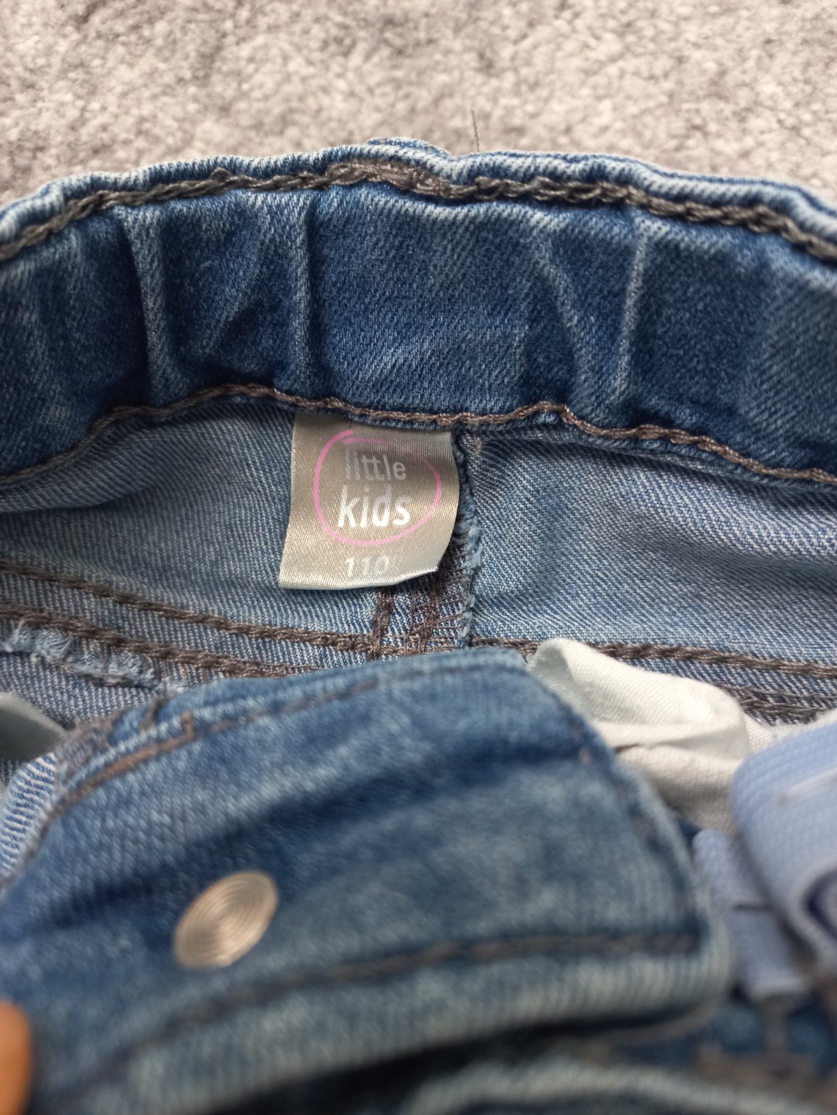 2 krát oblečené rifle v top stave bez vád či poškodení, cvok namiesto gombíka pre ľahšie zapínanie, nastaviteľný pás, píšu veľkosť 110, ale podľa mňa sa dajú nosiť už od 104.