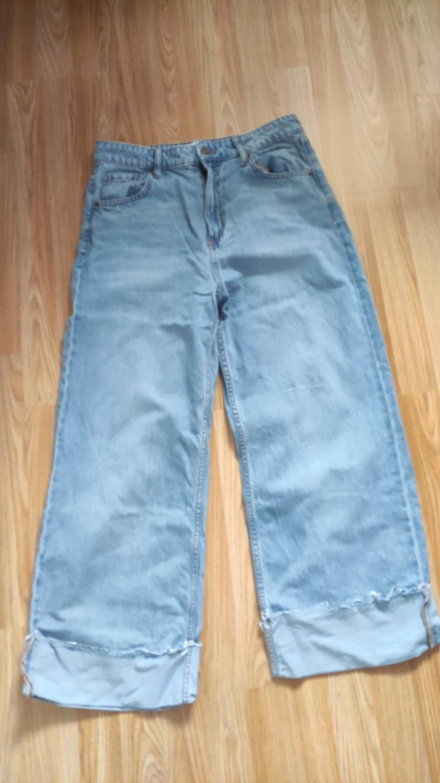Dámske rifle v dobrom stave. Nie sú elastické. Skôr pevná riflovina. Veľkosť XL. Diery na kolenách. Cena bez poštovného.