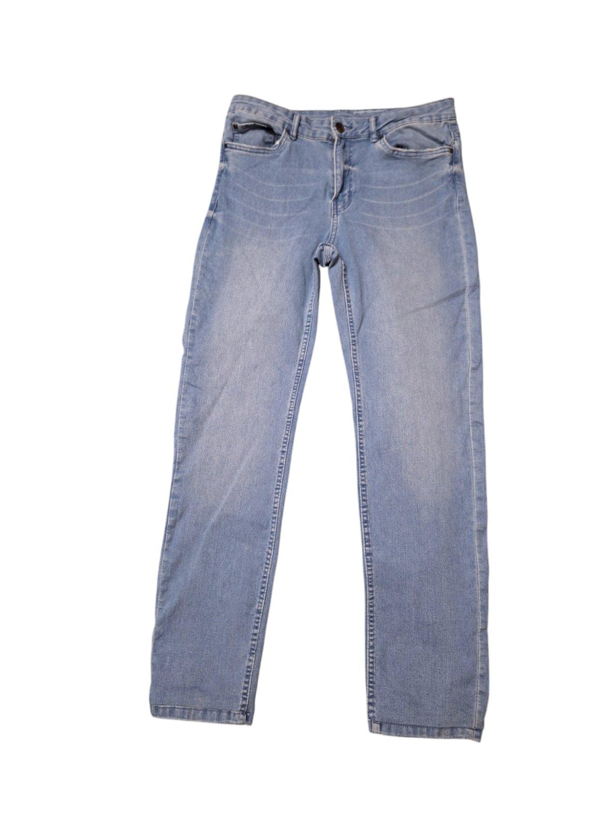 Dievčenské elastické rifle. Zapínanie je vpredu na zips a gombík. Dĺžka je 95cm,obvod pása v kľude je 76cm,natiahnuté 90cm. kód 956