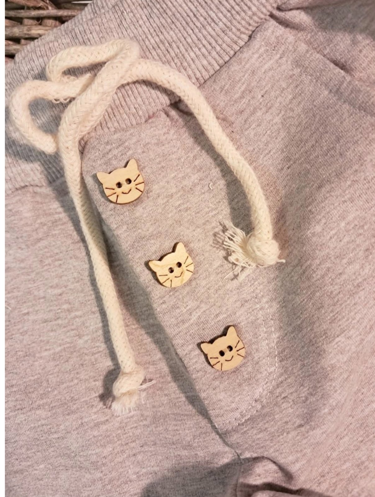 Detské bavlnené tepláky s gombíkom mačička