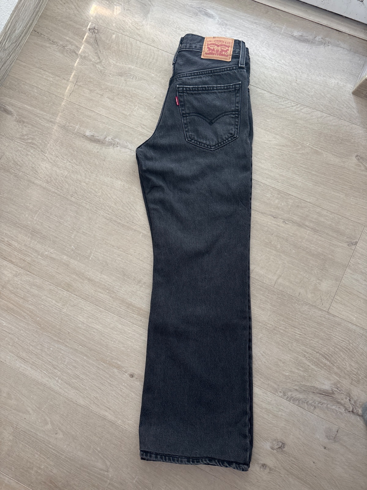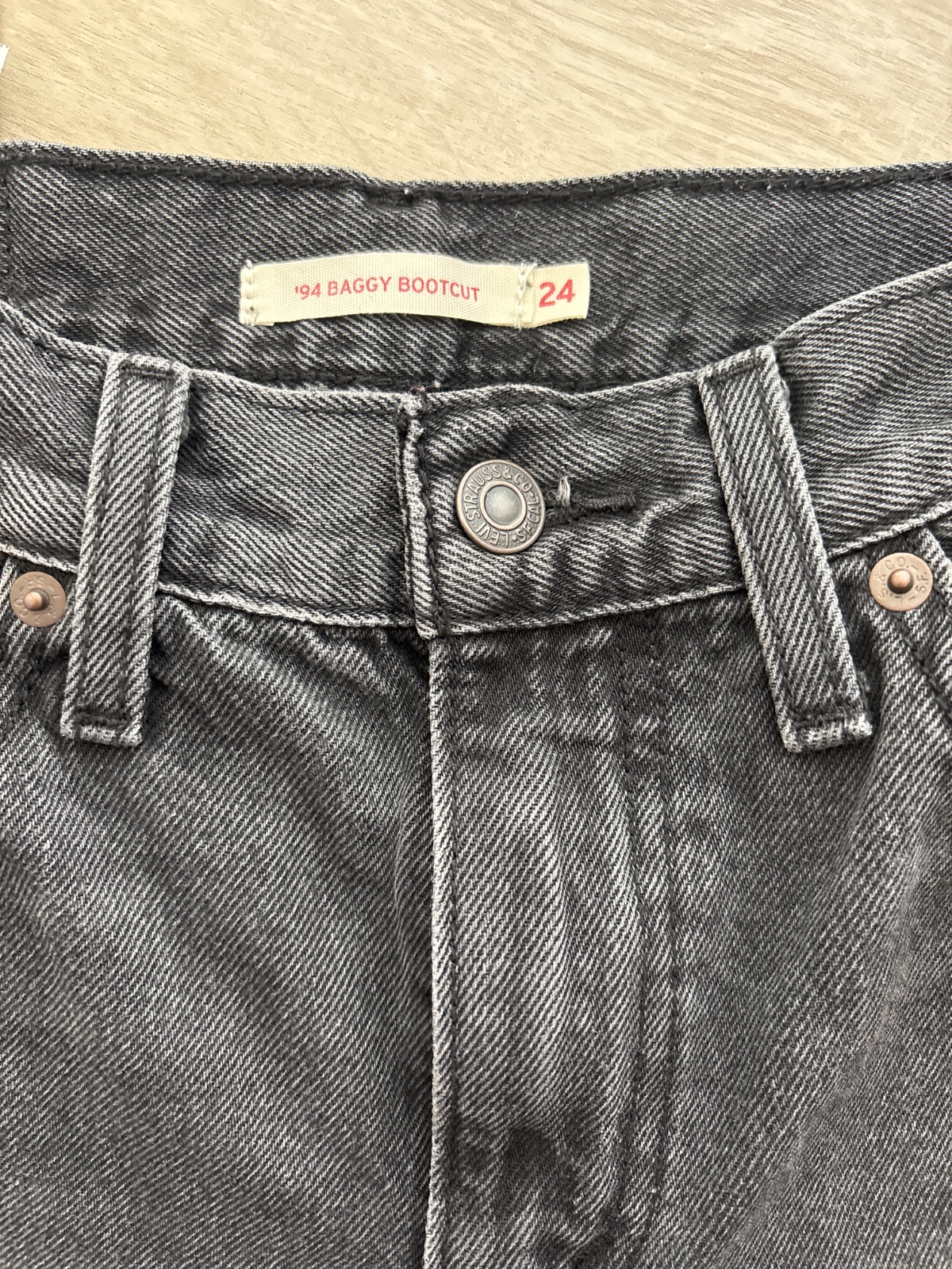Rifle baggy bootcut, krasne sedia. Neposkodene, ziadne znamky nosenia. Boli profesionalne skracovane na vysku 160 cm. Dcera mala len par keat oblecene.