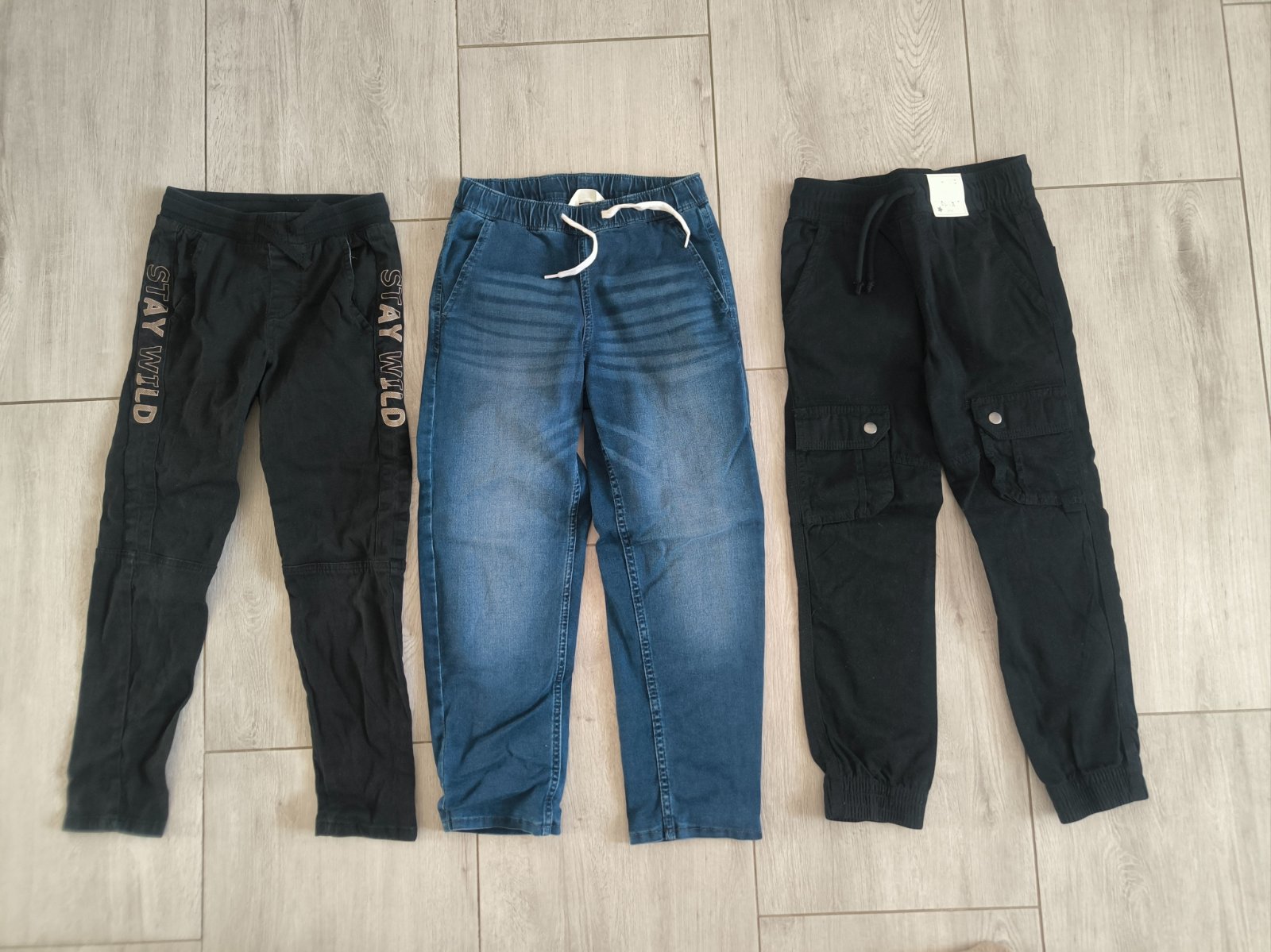 Všetky veľkosť 128, z ľava pepco nohavice, rifle podšité H&M, posledné F&F, nové s visačkou. Všetky sú vhodné na nosenie napr. do školy. Cena spolu, pevná.