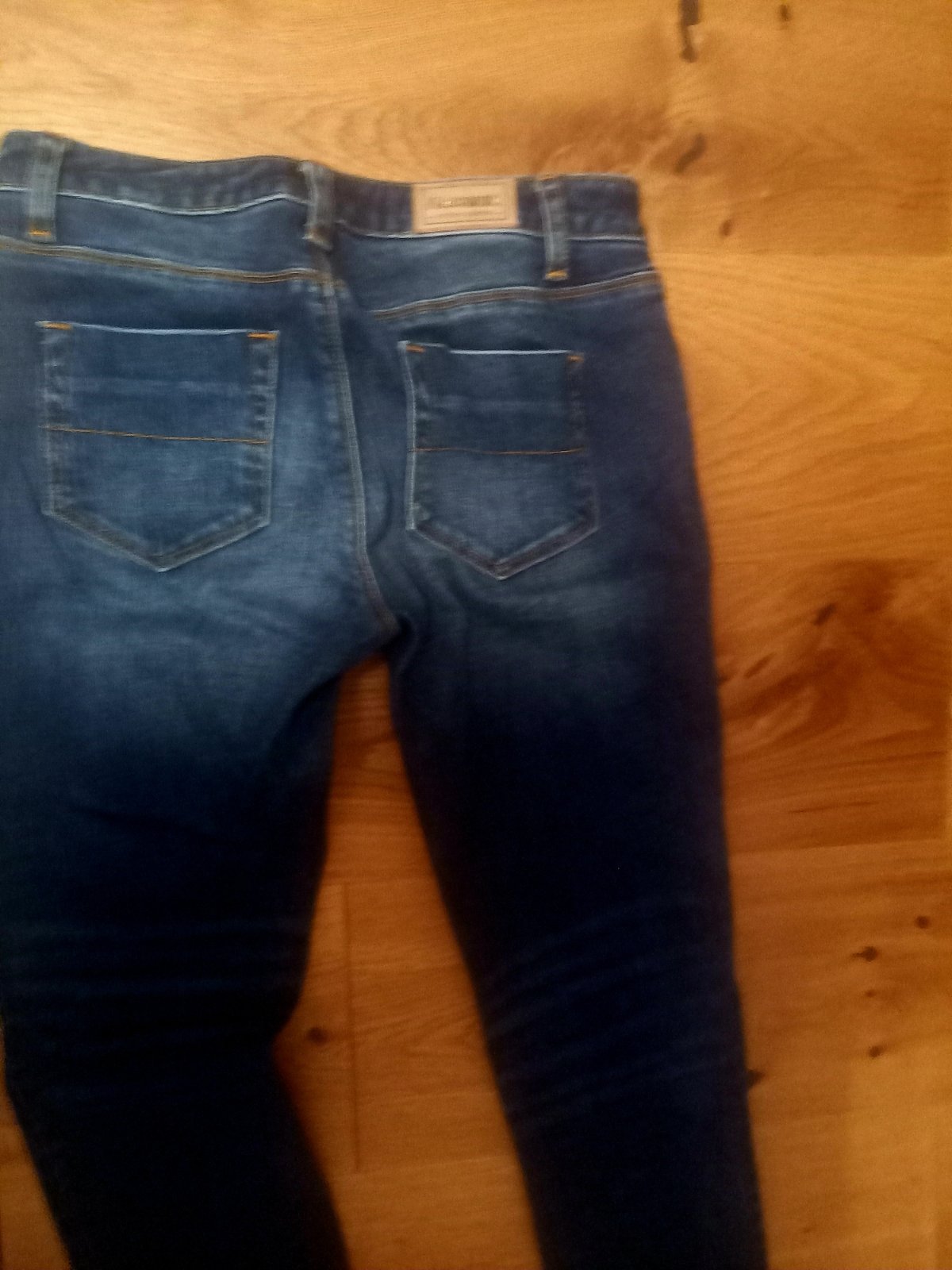 Predám rifle, takmer nenosené, len 1-2 x oblečené, Veľkosť 34-36, farba tmavomodrá so sivou, tmavšia ako na foto, skreslil mi to blesk, je to poľská výroba.