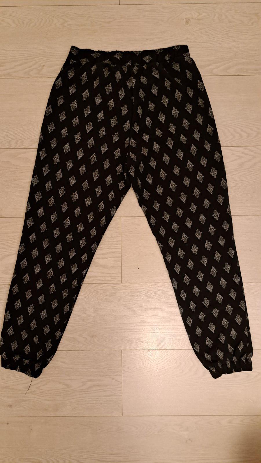 Ponúkam na striedačku nosené tenšie nohavice. Pekný nosený stav, poškodenia som nenašla. Dĺžka cca 87cm, pás cca 34cmx2. J