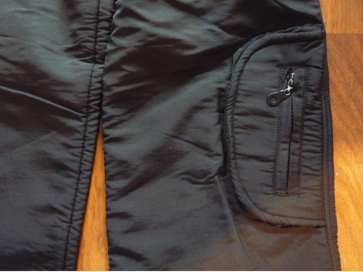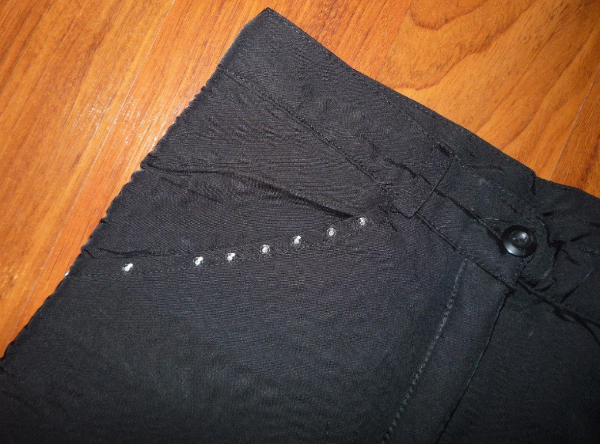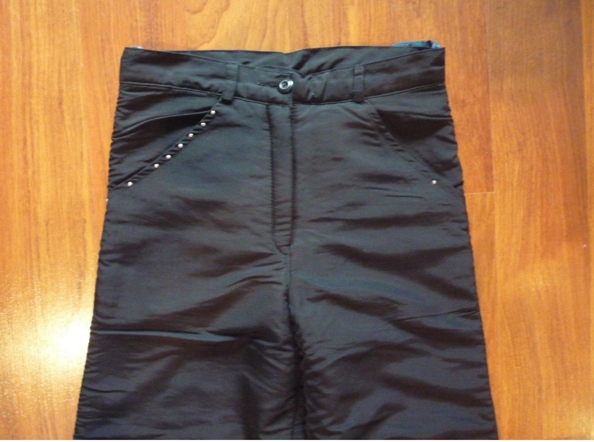 Veľmi hruhé pekné dievčenské nohavice podšite flisom. Látka je ako šušťák ale šušťak to nie je :-) Okolo vreciek malé kamienky. Niektoré tam už nie su, ale tie čo ostali, sa dajú dať bez stopy, že tam niekedy boli, dole.