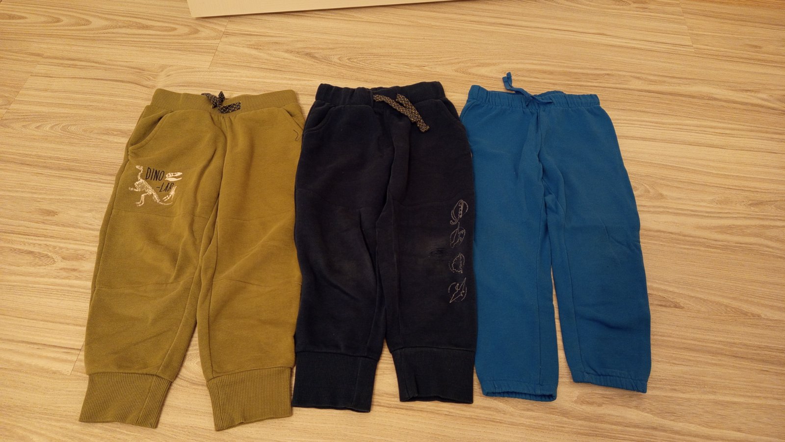 Vhodné do škôlky. Tmavo modré už na kolené je zošuchané. Ináč bez poškodení