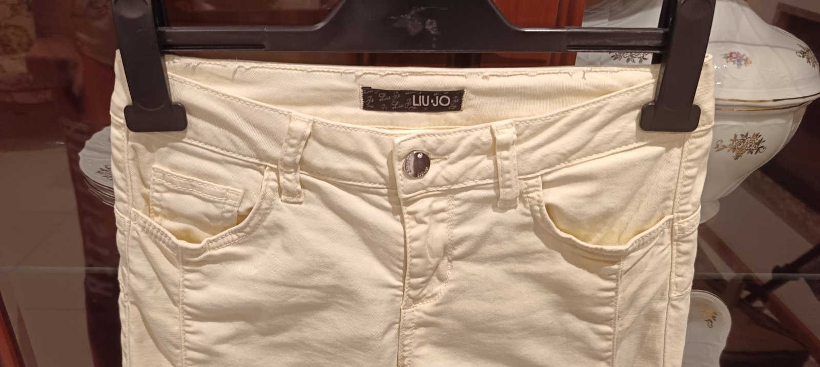 Tenšie elastické rifle v krásnej žiarivej jemne žltej farbe / foto nevyšlo - umelé osvetlenie /, 98% bavlna, 2% elastan, veľkosť uvedená č. 27, pekné zaujímavé šitie, super stav, povolená nitka na vnútornej strane opasku, viď foto, zohľadňujem v cene.
