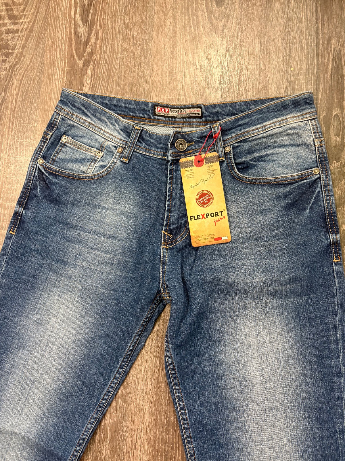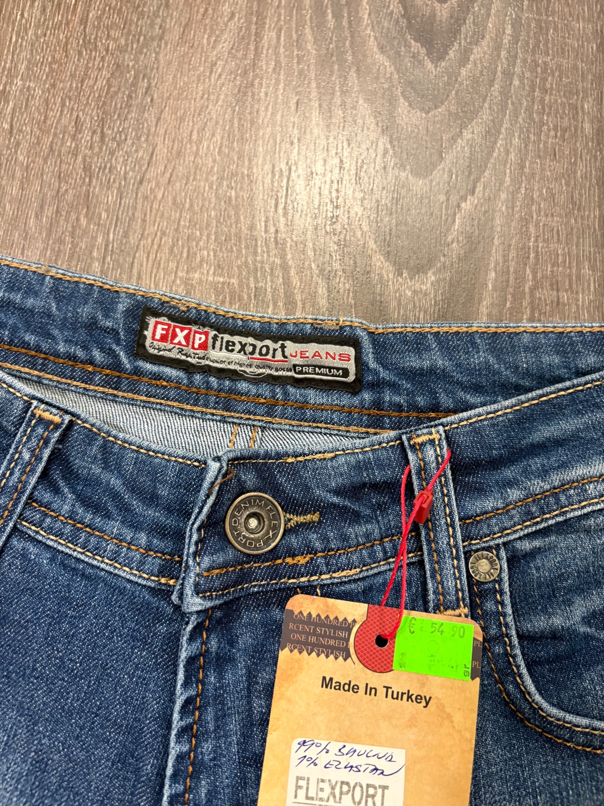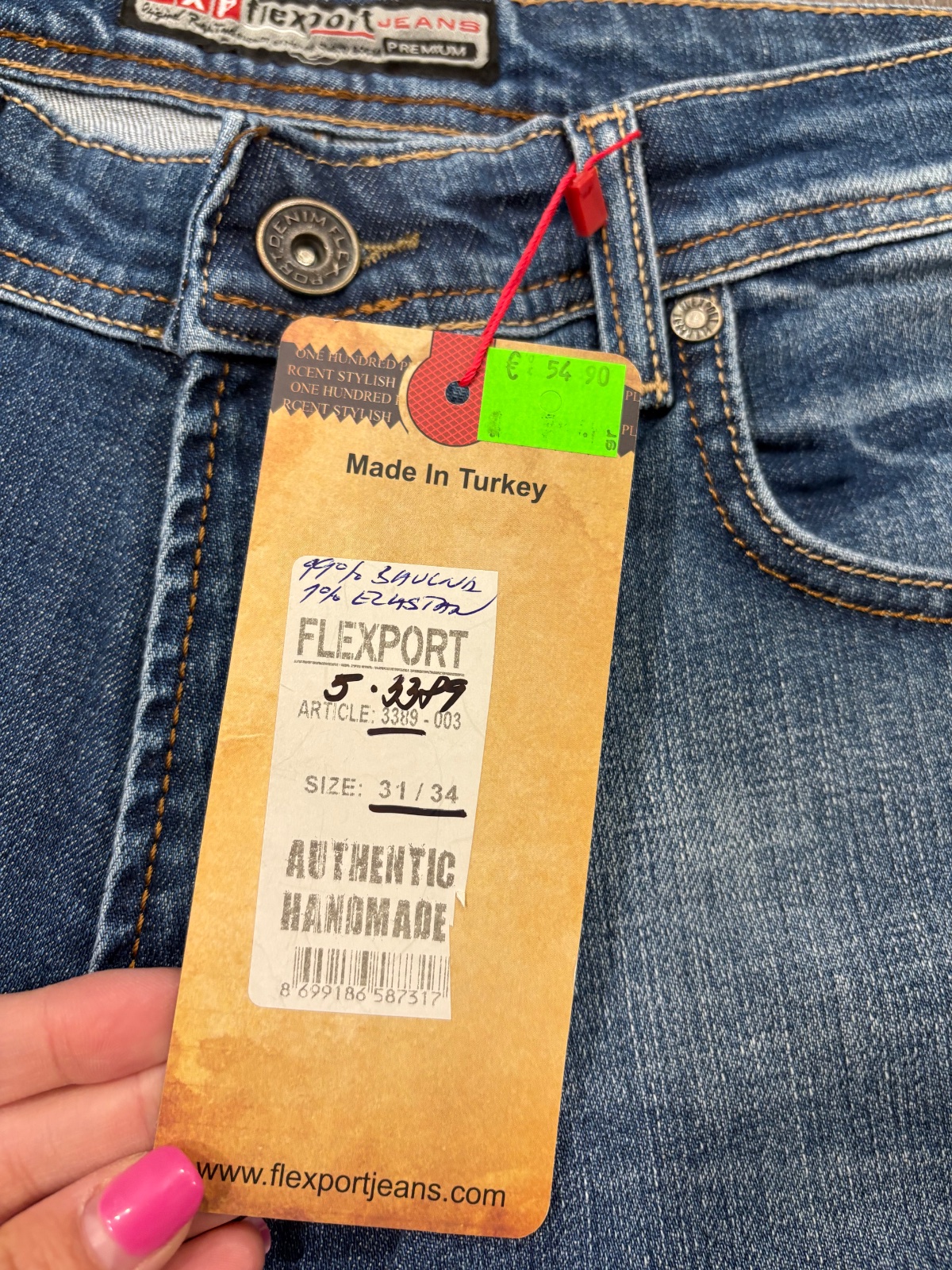 FLexport nove panske riflove nohavice,komplet s etiketou,PC 55 eur, material bavlna a elastan,velkost W31 L 34,dlzka je 111cm,sirka v pase je cca 41x2cm,predny sed je 27cm a zadny je 35cm,sirka stehna pod rozkrokom je 31x2cm,sirka dole je 19x2cm