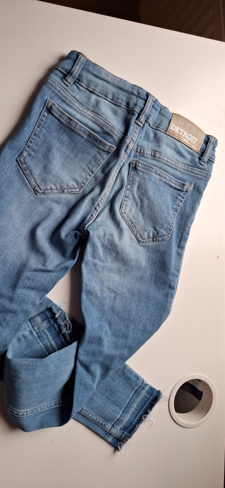 Ponúkam krásne modré rifle s motívom slabomodrých hviezdičiek. Veľkosť je uvedená veľkosť 140, čo je asi na 9-10 rokov, ale prikladám radšej aj rozmery. Značka je Detroit Lindex. V páse možnosť reg...